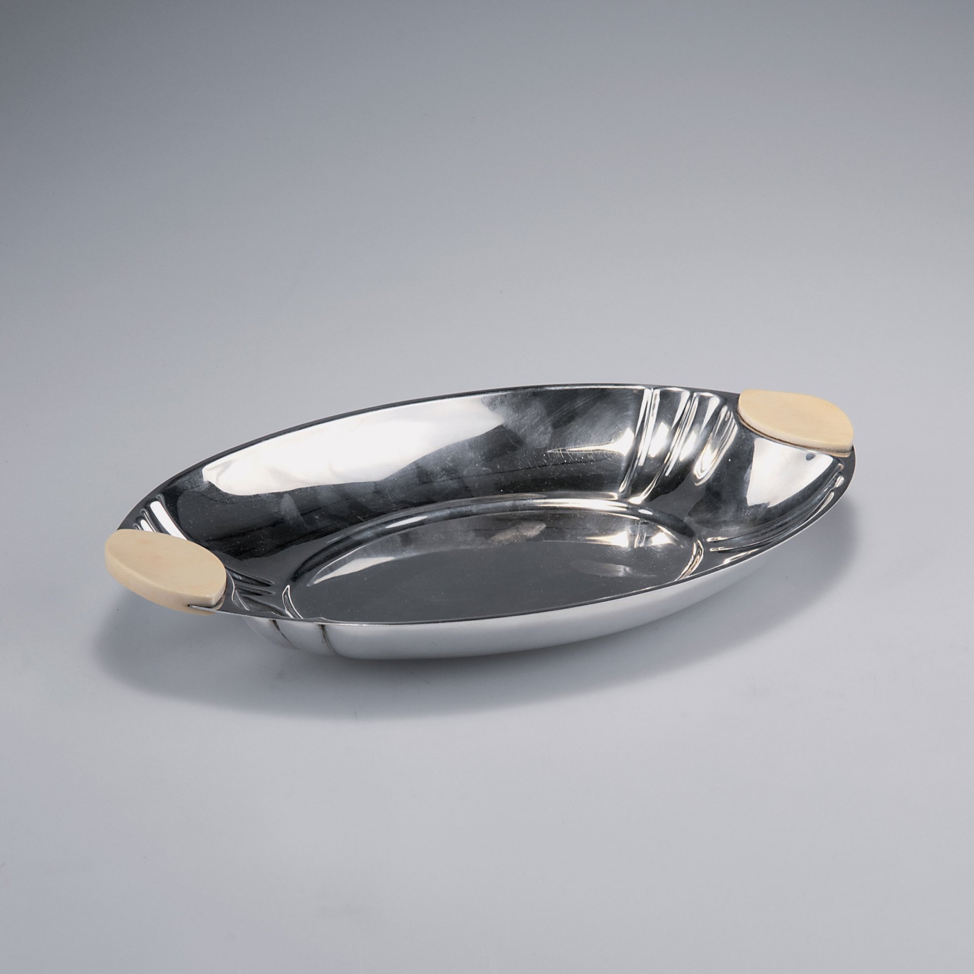 Wolfers Frères, Brussels. Bowl, c1930. 32.8 x 19.5 cm. Silver, ivory handles. Marked: C F 53, maker's mark, 833.