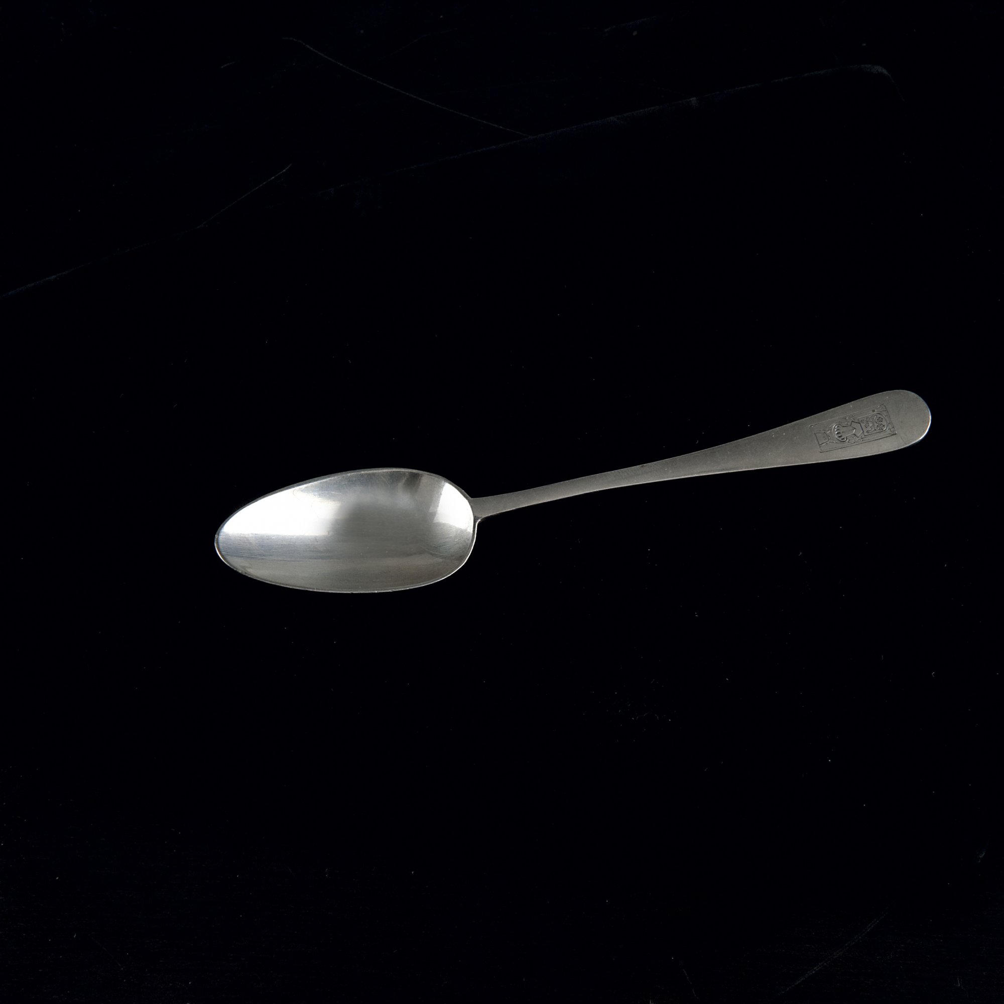 Henry van de Velde. 'Model III' dessert spoon, 1910/11. L. 18.7 cm. Silver, engraved owner's coat of arms. Marked: 800 German hallmarks.
