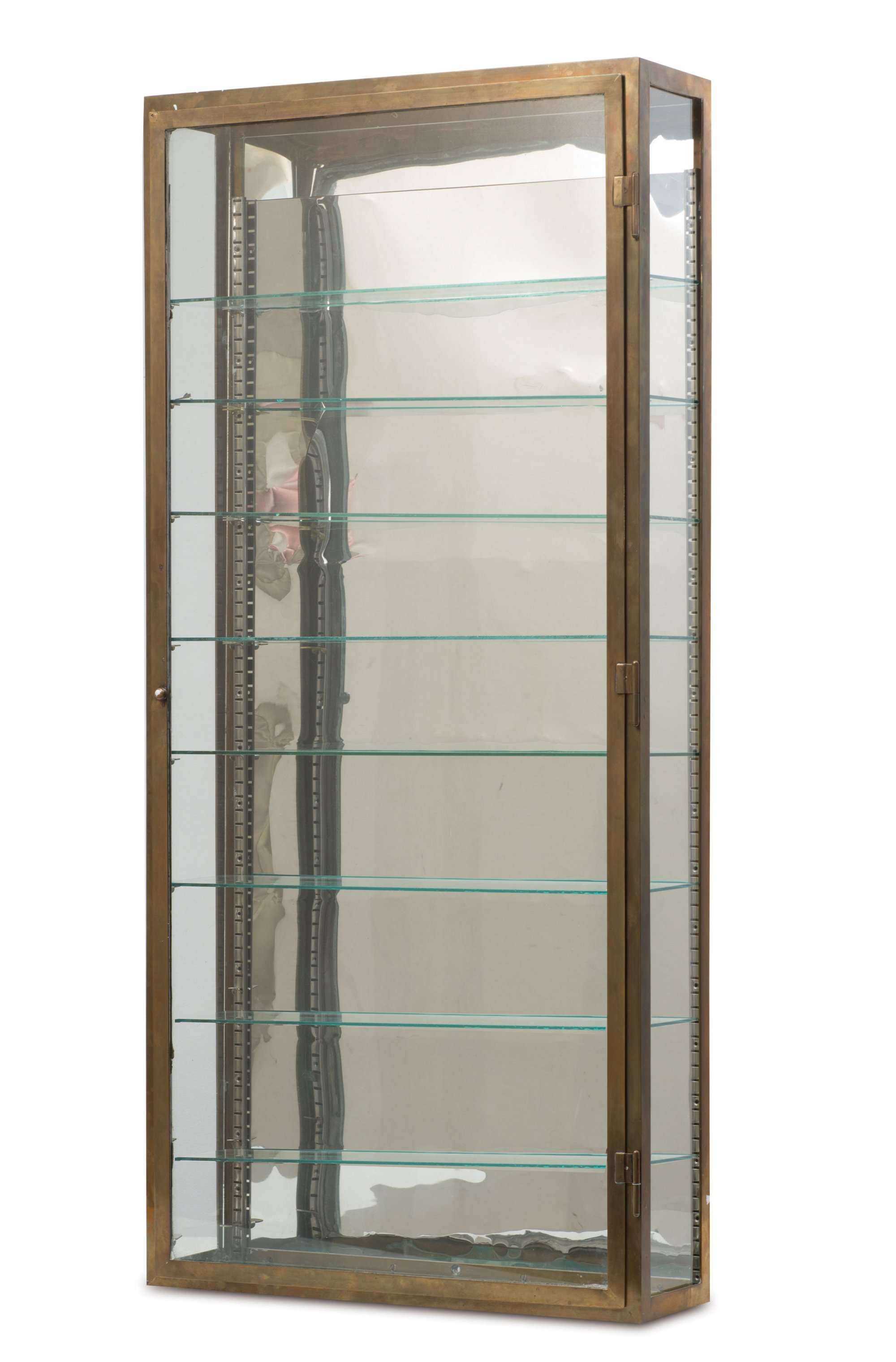 France. Hanging showcase, c1930. H. 130 cm, 60 x 19 cm. Brass, glass.