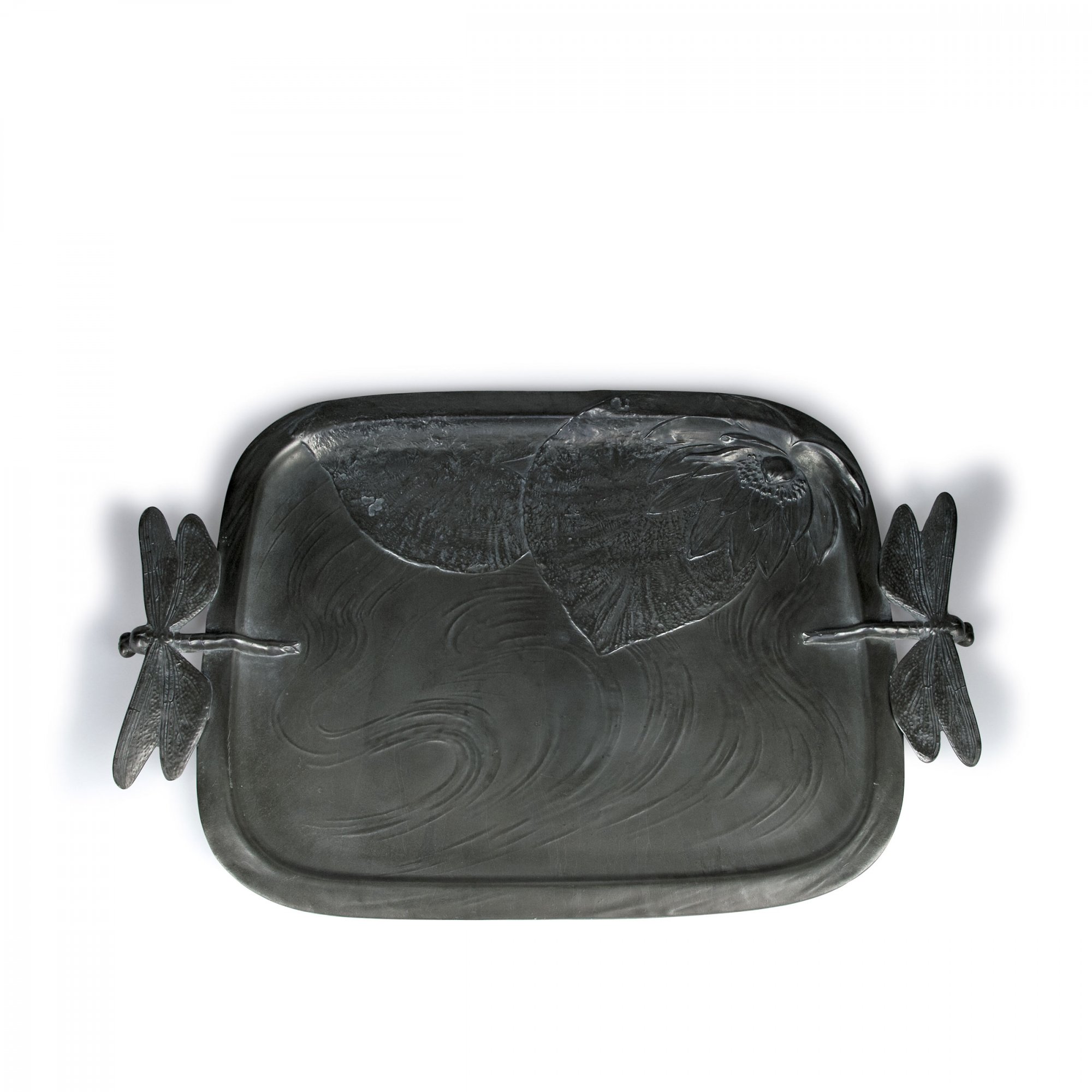 J. P. Kayser Son, Krefeld. Tray, 1900. 47 x 30 cm. Designed by Hugo Leven. Pewter. Marked: Maker's mark 4188.