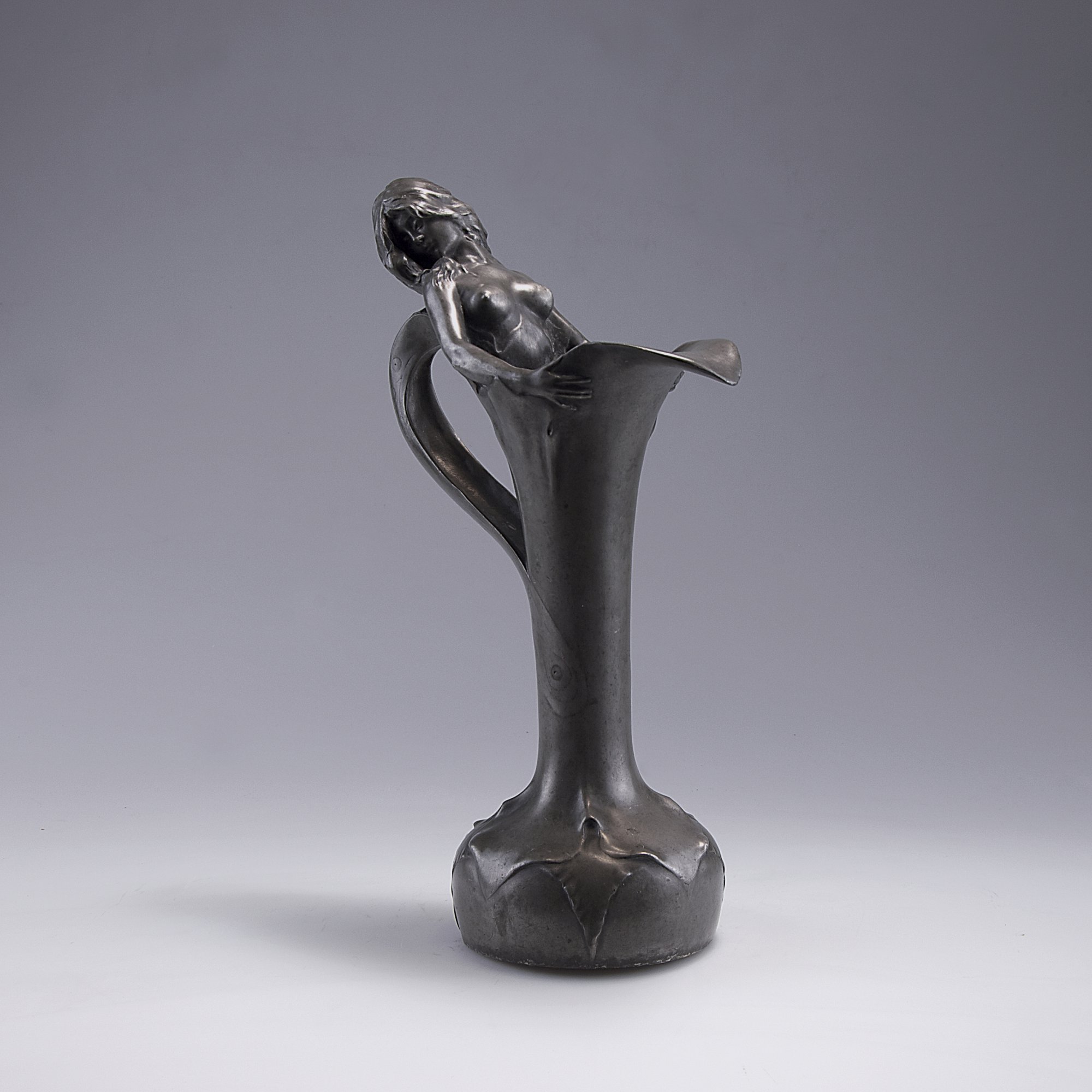 Raphael-Charles Peyre, Paris. Decanter with girl, c1898. H. 32 cm. Made by Siot-Decauville, Paris. Pewter. Marked: R. C. Peyre, founder's mark, K 151.