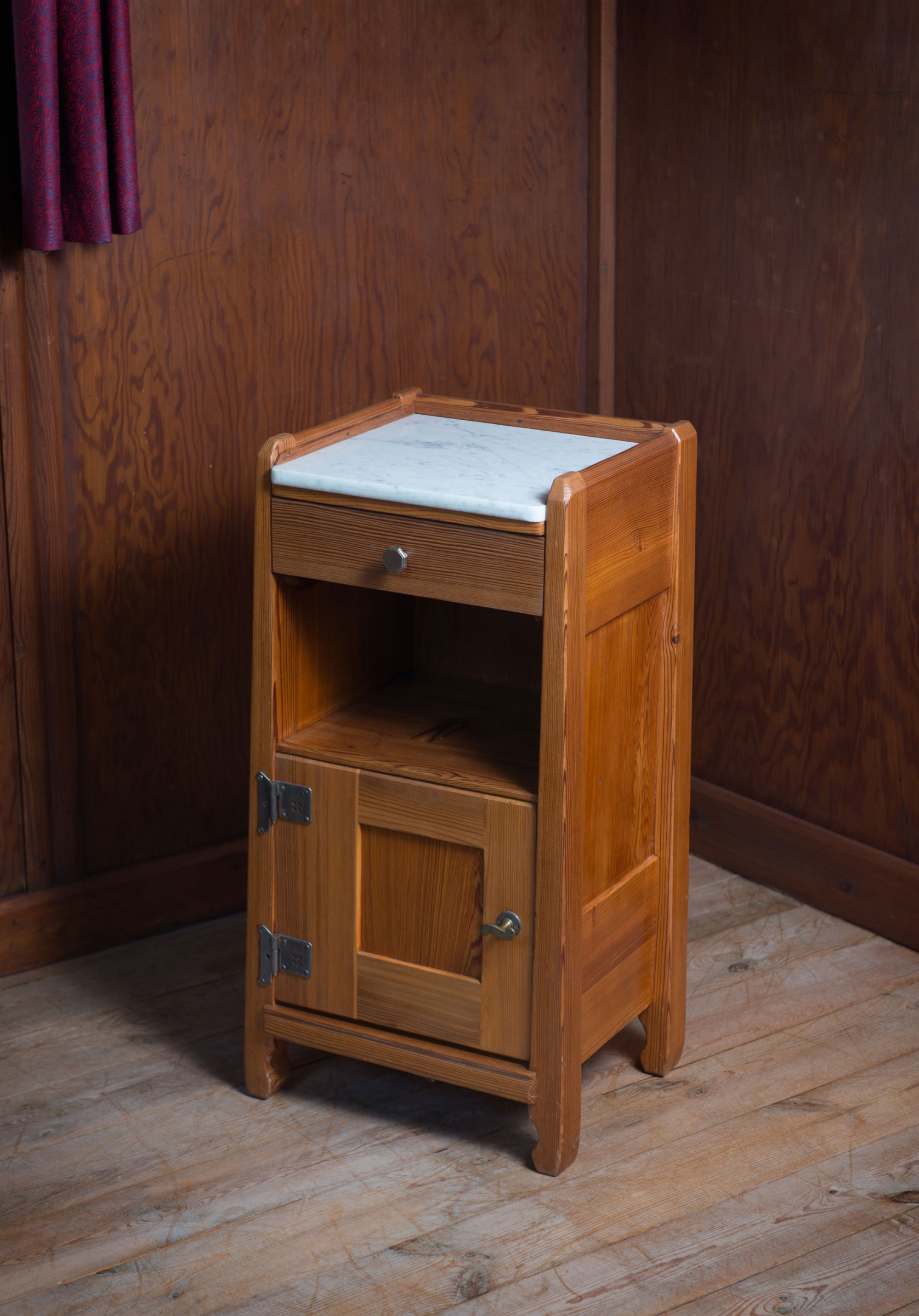 Richard Riemerschmid. 'III' bedside table, 1905. H. 83 cm, 42.5 x 38 cm. Made by Dresdener Werkstätten, Hellerau. Oak, iron fittings, marble top.