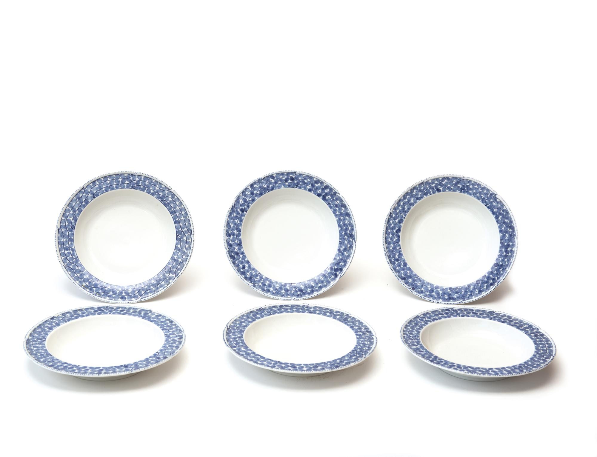 Richard Riemerschmid. Six soup plates, 1903-05. D. 24.5 cm. Made by StPM Meissen. Porcelain, white, glazed, blue underglaze. Marked: Maker's mark 61a 17, 1604.