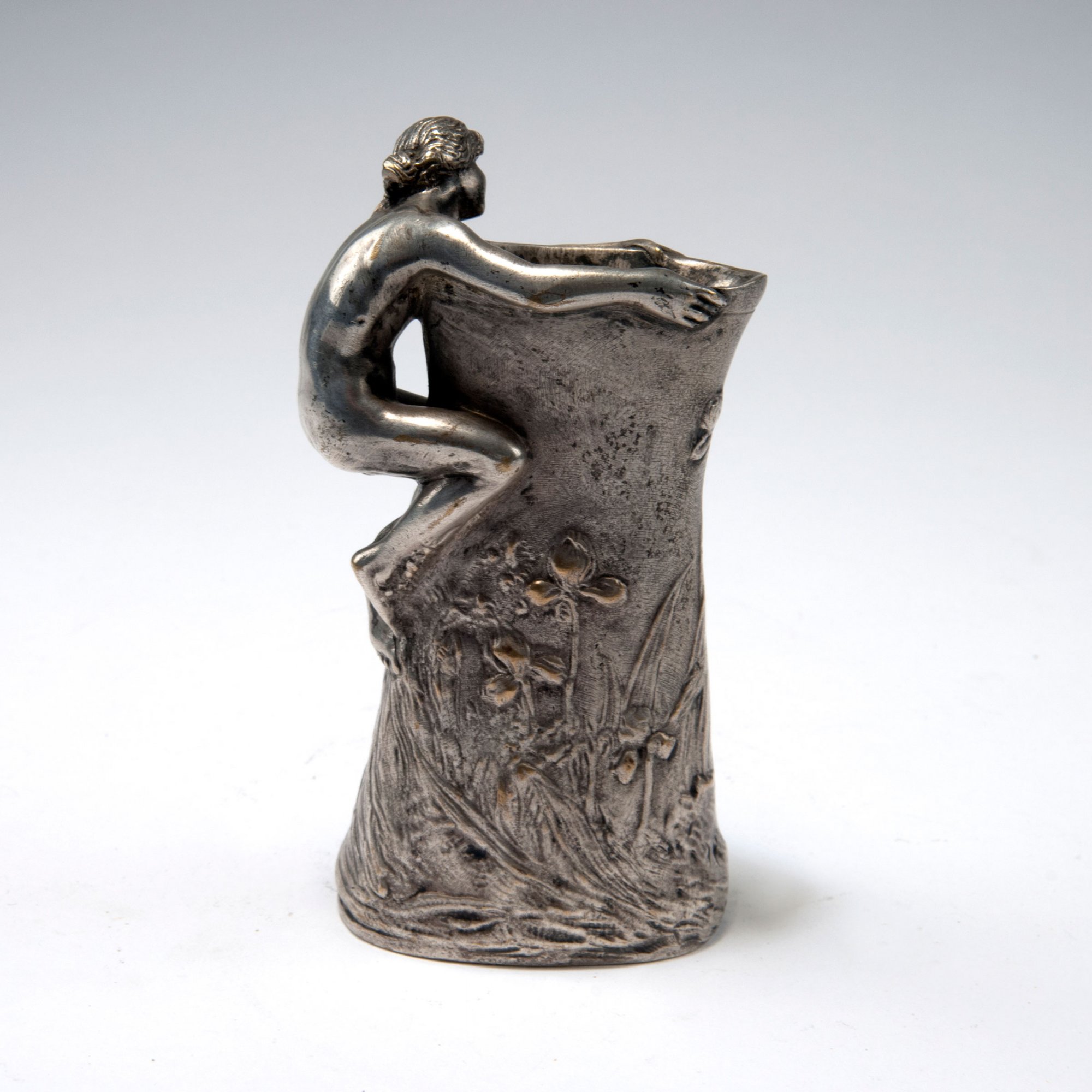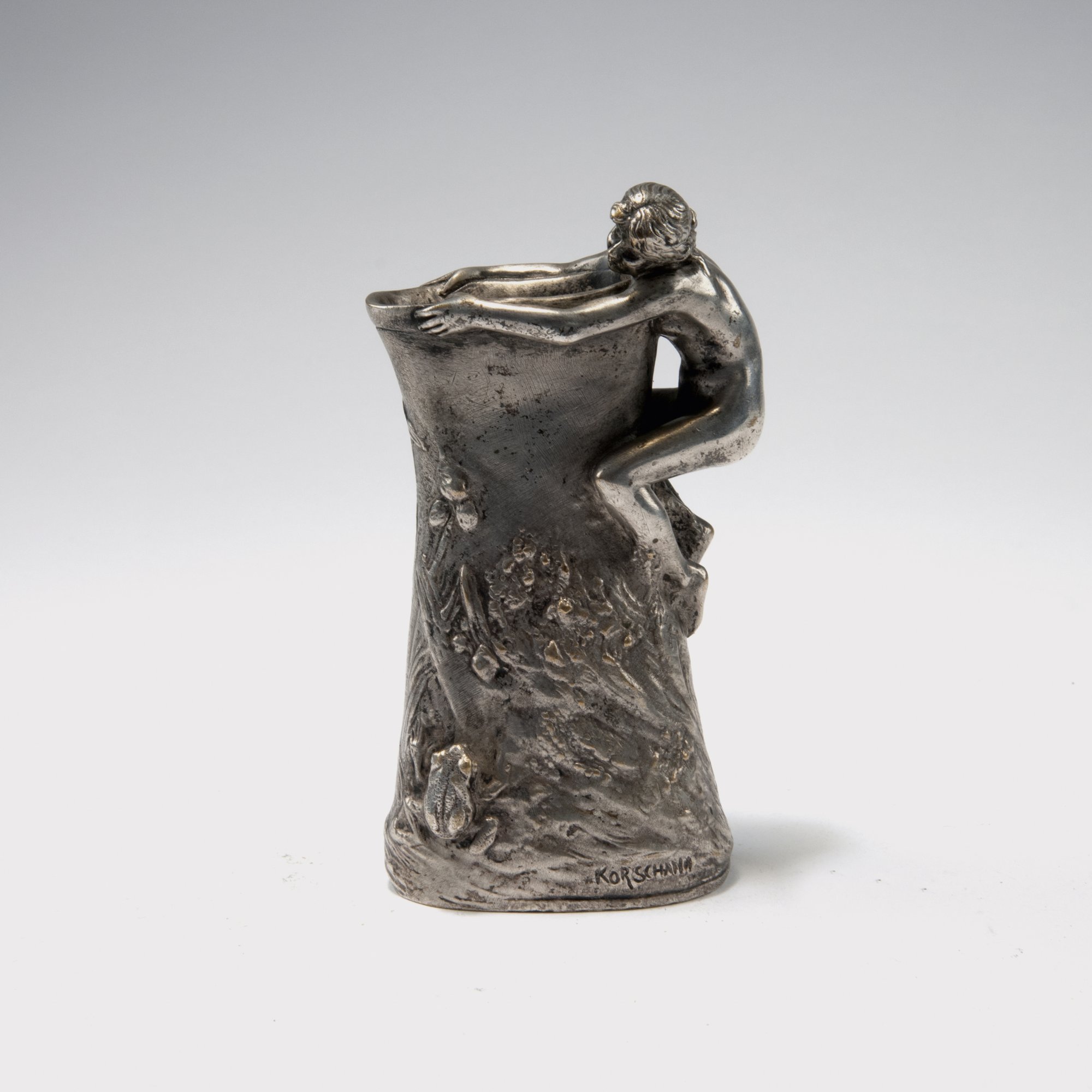 Charles Korschann. Vase, c1900. H. 14 cm. Made by Louchet, Paris. Silver-plated bronze. Marked: Korschann, LOUCHET.