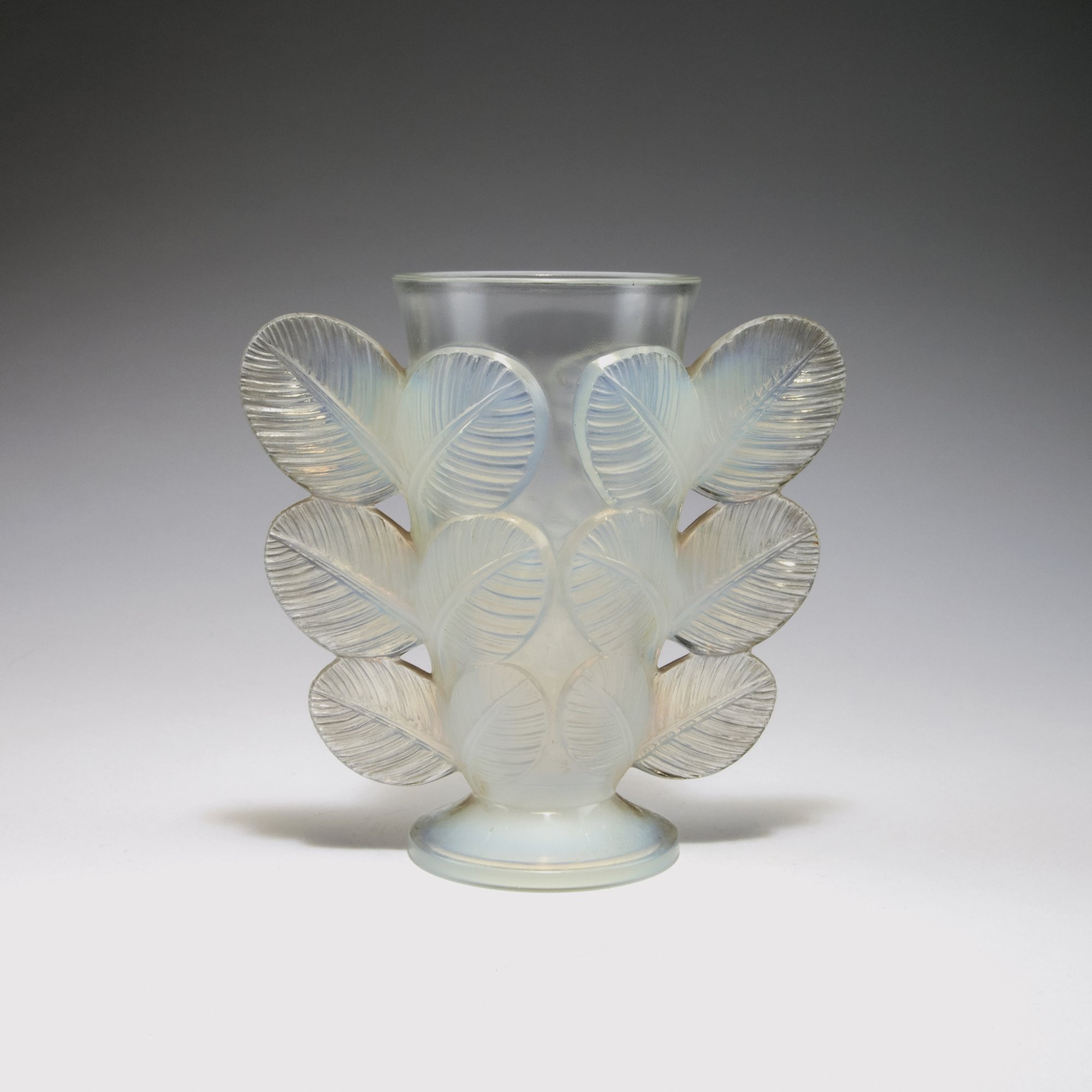 Pierre D'Avesn, Croismare. Vase with handles, c1930. H. 16.8 cm. Clear and milk white moulded glass, slightly opalescent. Marked: P. D'AVESN, MADE IN FRANCE.