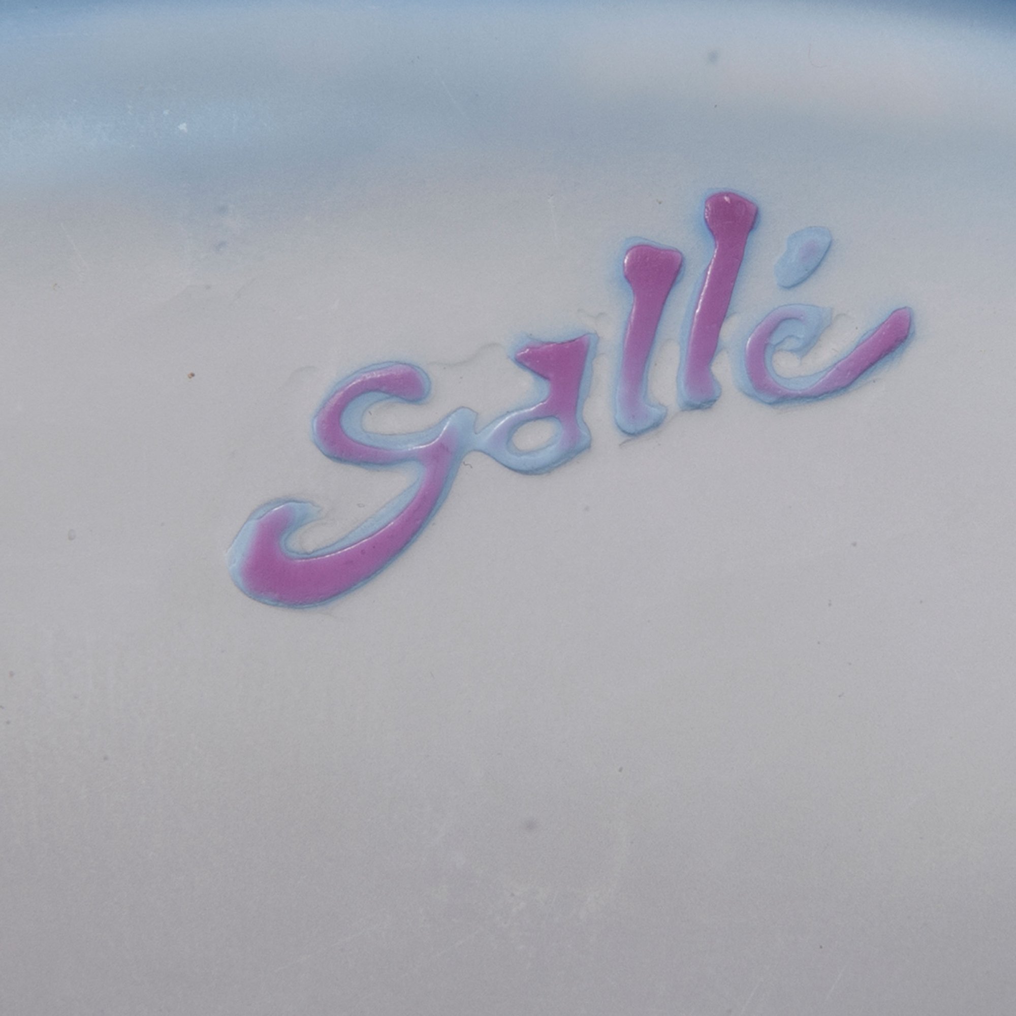 Emile Gallé, Nancy. Bowl with flowers, 1920s. H. 3.5 cm, D. 17.3 cm. Cased glass, clear and purple. Etched pattern with flowers. Signed: Gallé.