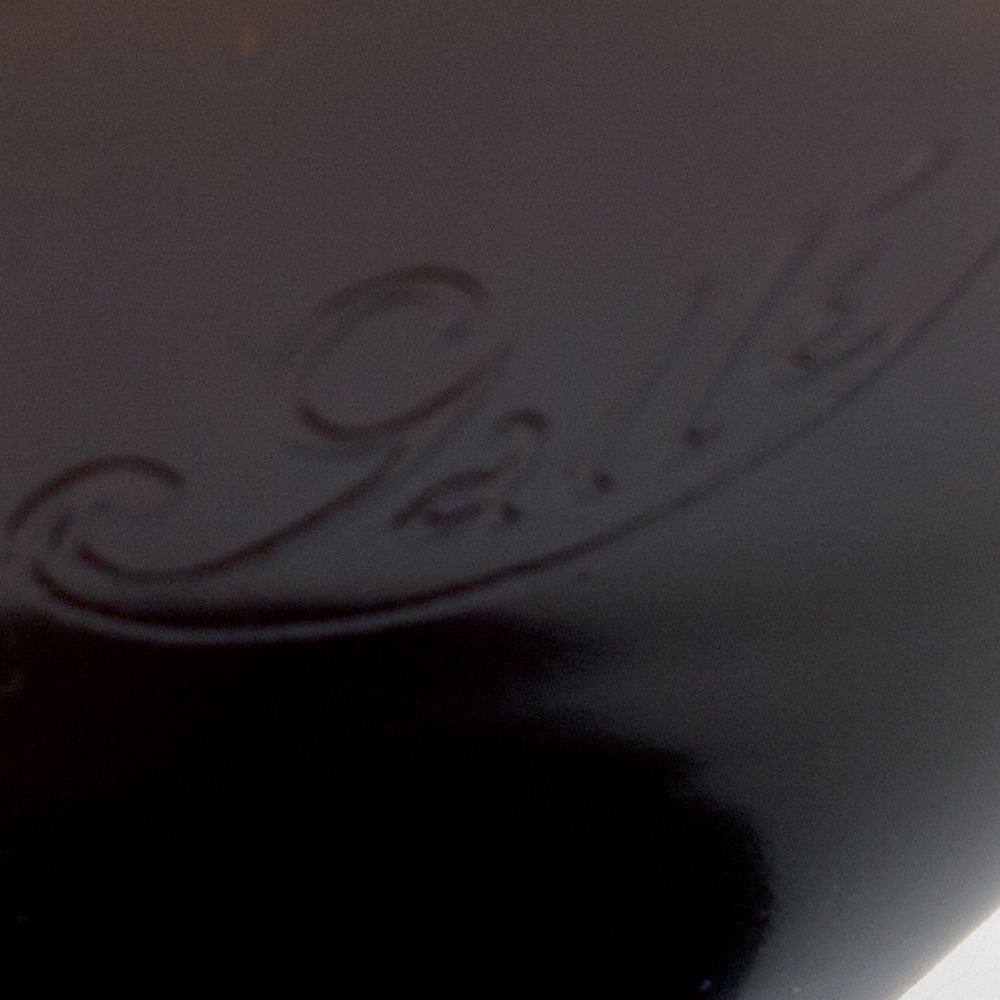 Emile Gallé, Nancy. Tall 'Paysage lacustre' vase, 1906-14. H. 50.5 cm. Cased glass, red, clear, green and brown. Multiply etched pattern with landscape, trees at sunset. Signed: Gallé.
