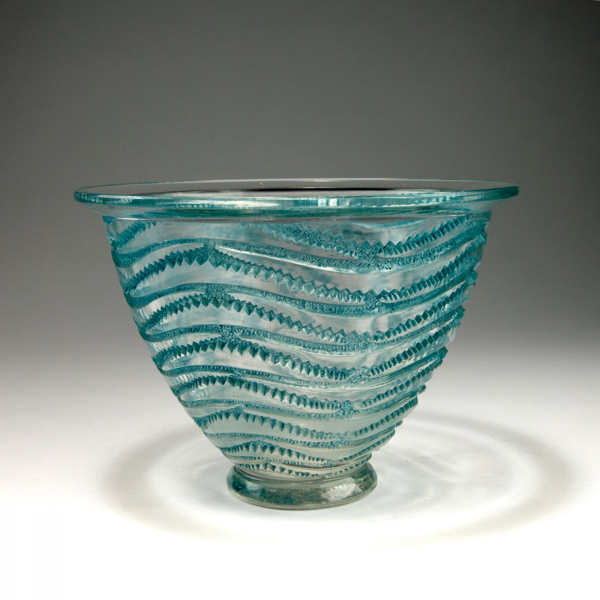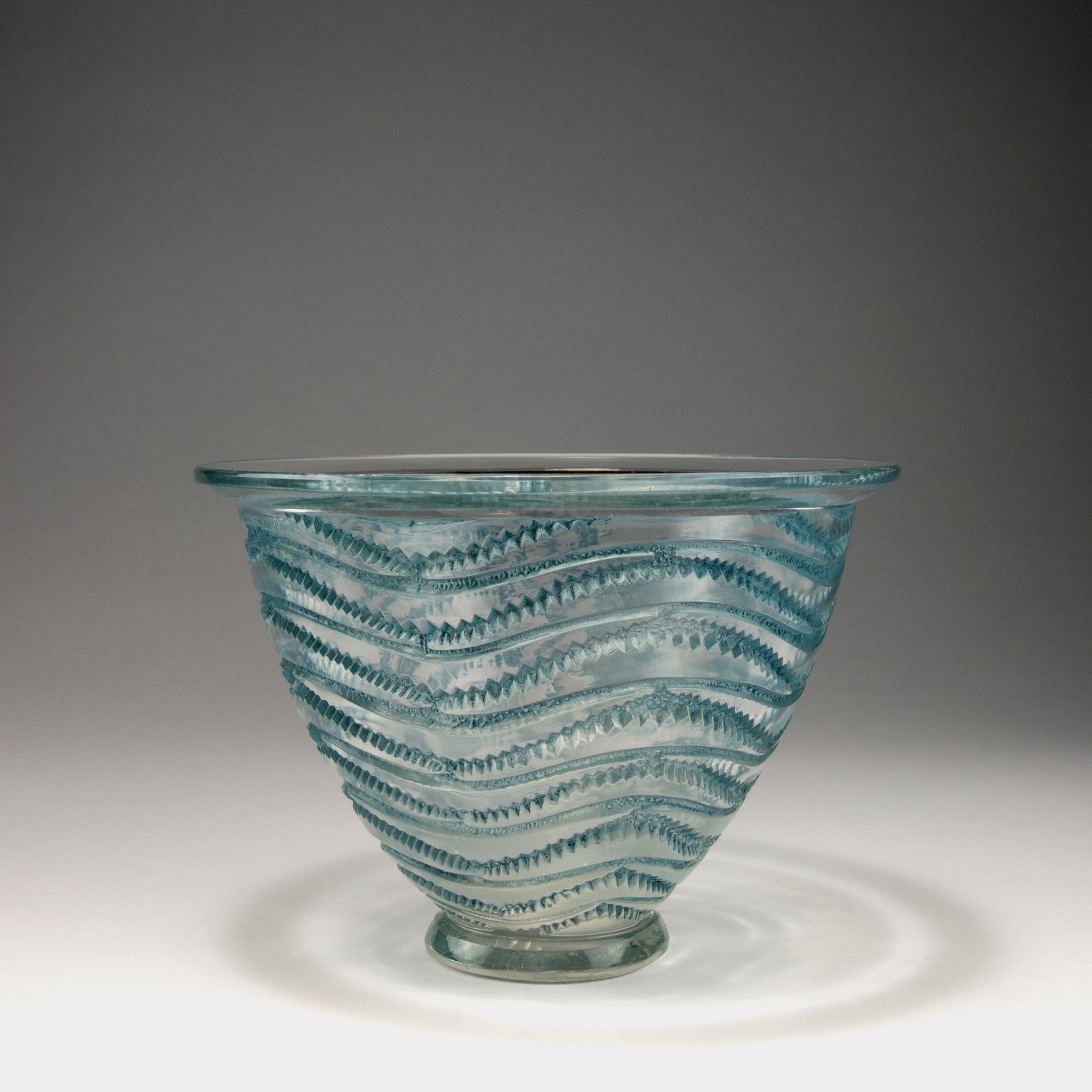 René Lalique, Wingen-sur-Moder. 'Annecy' vase, 1935. H. 15 cm. Clear moulded glass, blue patina. Marked: R. LALIQUE FRANCE.
