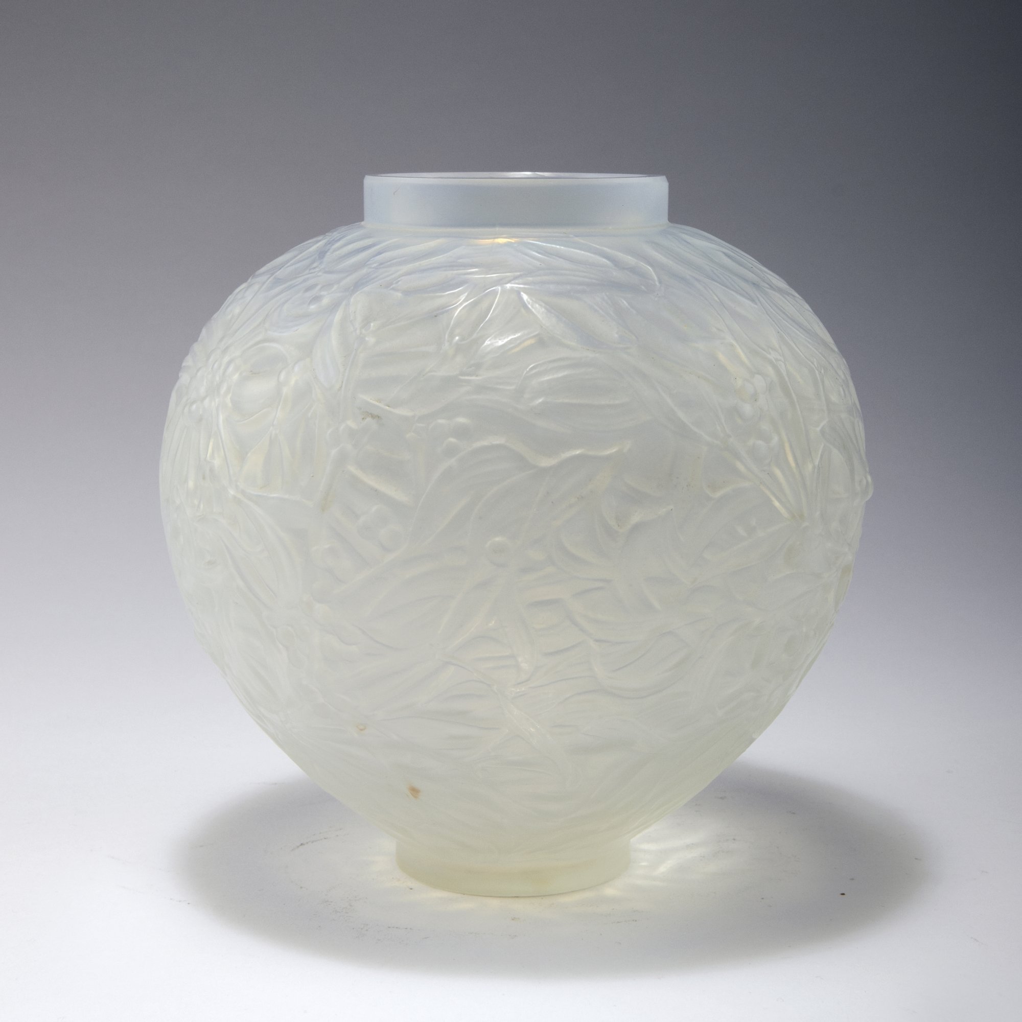 René Lalique, Wingen-sur-Moder. 'Gui' vase, 1920. H. 17 cm. Clear mould blown glass, slightly opalescent. Marked: R.LALIQUE.
