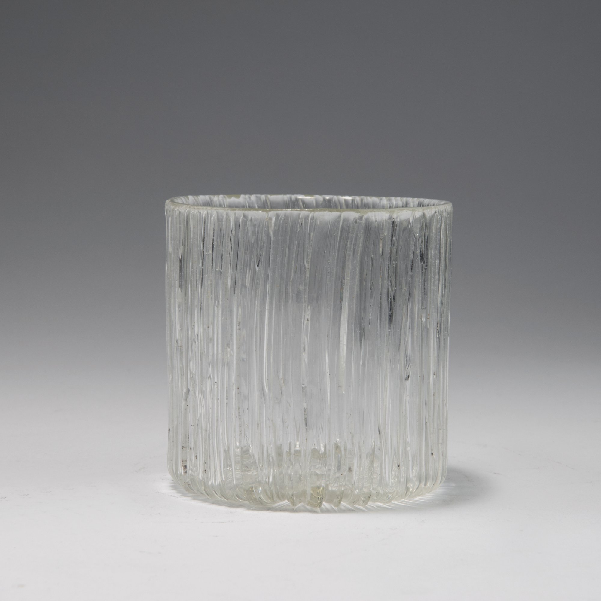 Loetz, Klostermühle. Vase, 1906. H. 9 cm. Designed by Leopold Bauer. 'Blitz' glass, clear, reliefed applied threads.