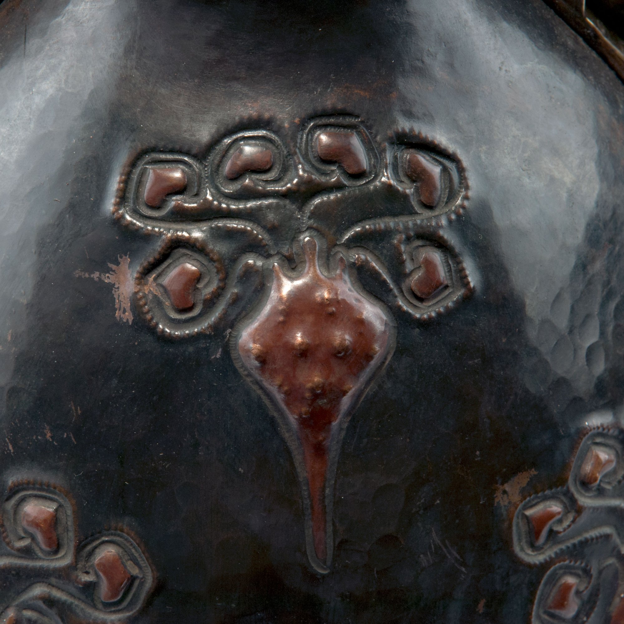 Winhardt & Co., Munich (attributed). Vase with handles, c1905. H. 36.8 cm. Sheet brass and copper, part rust red.