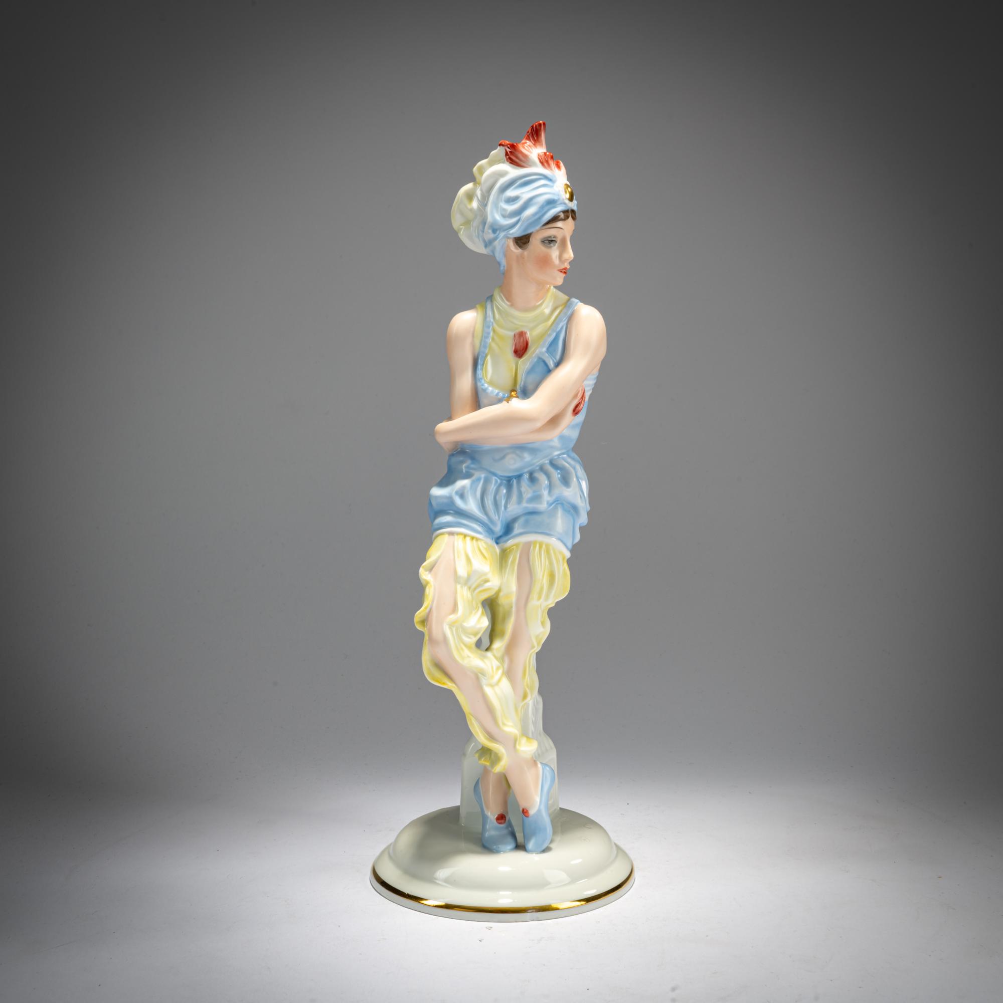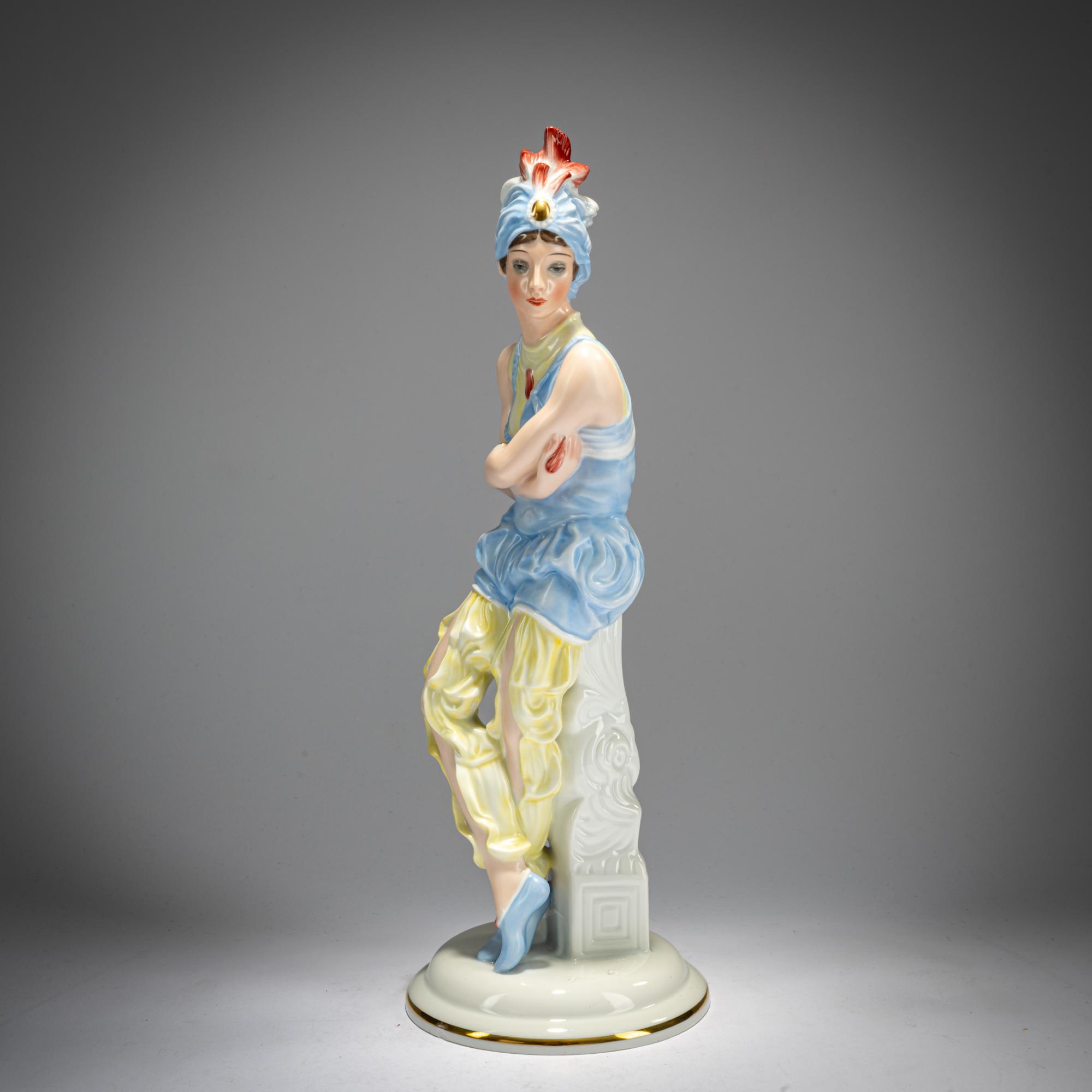 H. 31.5 cm. Execution: Rosenthal branch factory, Selb, 1928. White porcelain, glazed, polychrome overglaze. Bottom marked: manufacturer's mark in the cartouche (green, underglaze), 344 (embossed), painter's signature (gray, handwritten).