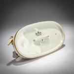 H. 9 cm. Execution: Rosenthal, Selb, 1929. White porcelain, glazed, polychrome overglaze with gold. Marked on the base: manufacturer's mark (green, under glaze), GZ, 5 (stamped).