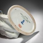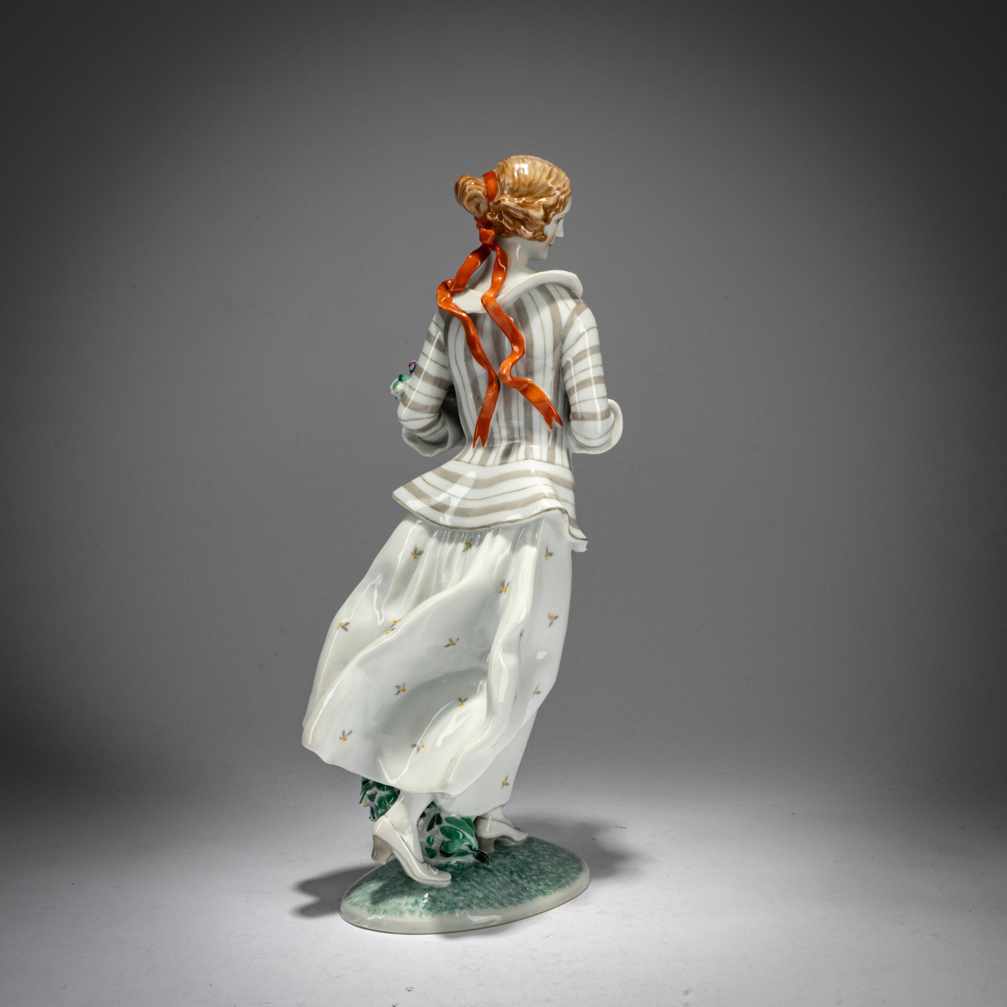 H. 24 cm. Execution: Augarten Vienna. White porcelain, glazed, polychrome overglaze. Base marked: IDA SCHWETZ-LEHMANN. Marked: WIENER GESELLSCHAFT V. FREUNDEN D. KLEINPLASTIK (green glaze stamp), manufacturer's mark (blue, underglaze), Augarten Austria (red glaze stamp), 65 (embossed), 64 (gray, handwritten).
