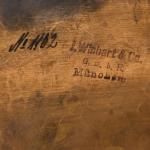 H. 71 cm. Execution: J. Winhart & Co., Munich. Copper sheet, dark green patina. A semi-sculptural dragon catching a fly in iris blossoms. Bottom marked: workshop signet, No. 1102.
