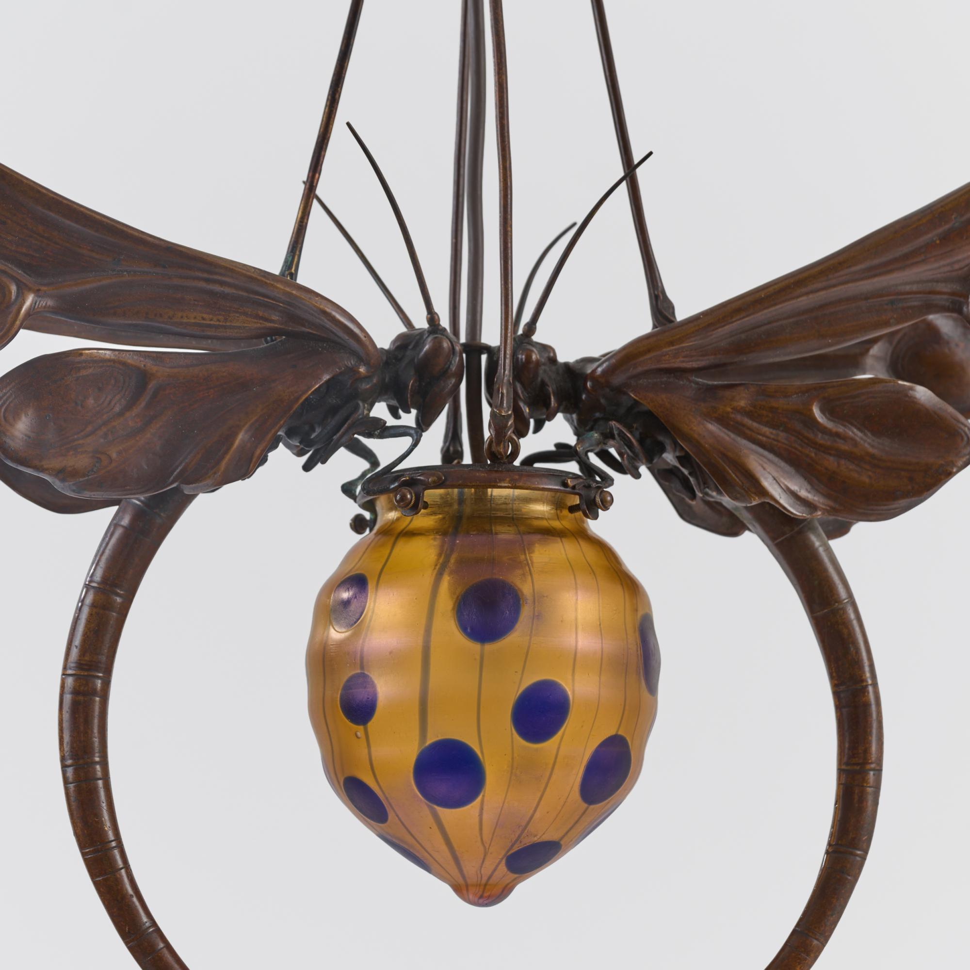 Ceiling light 'Dragonflies' glass lampshade 'with stripes and spots', c. 1903
