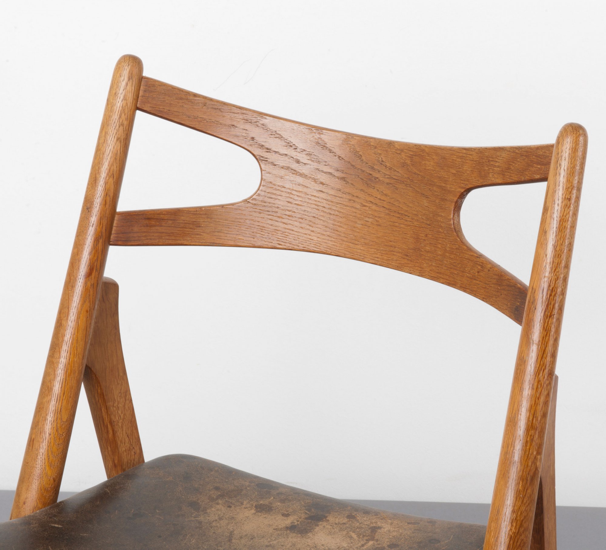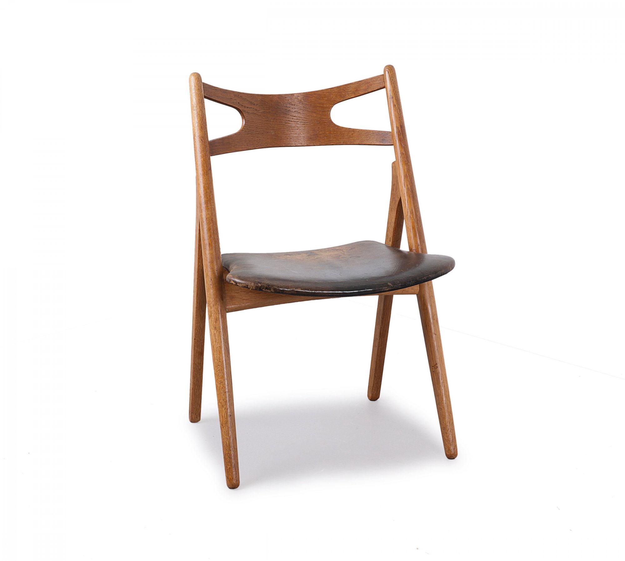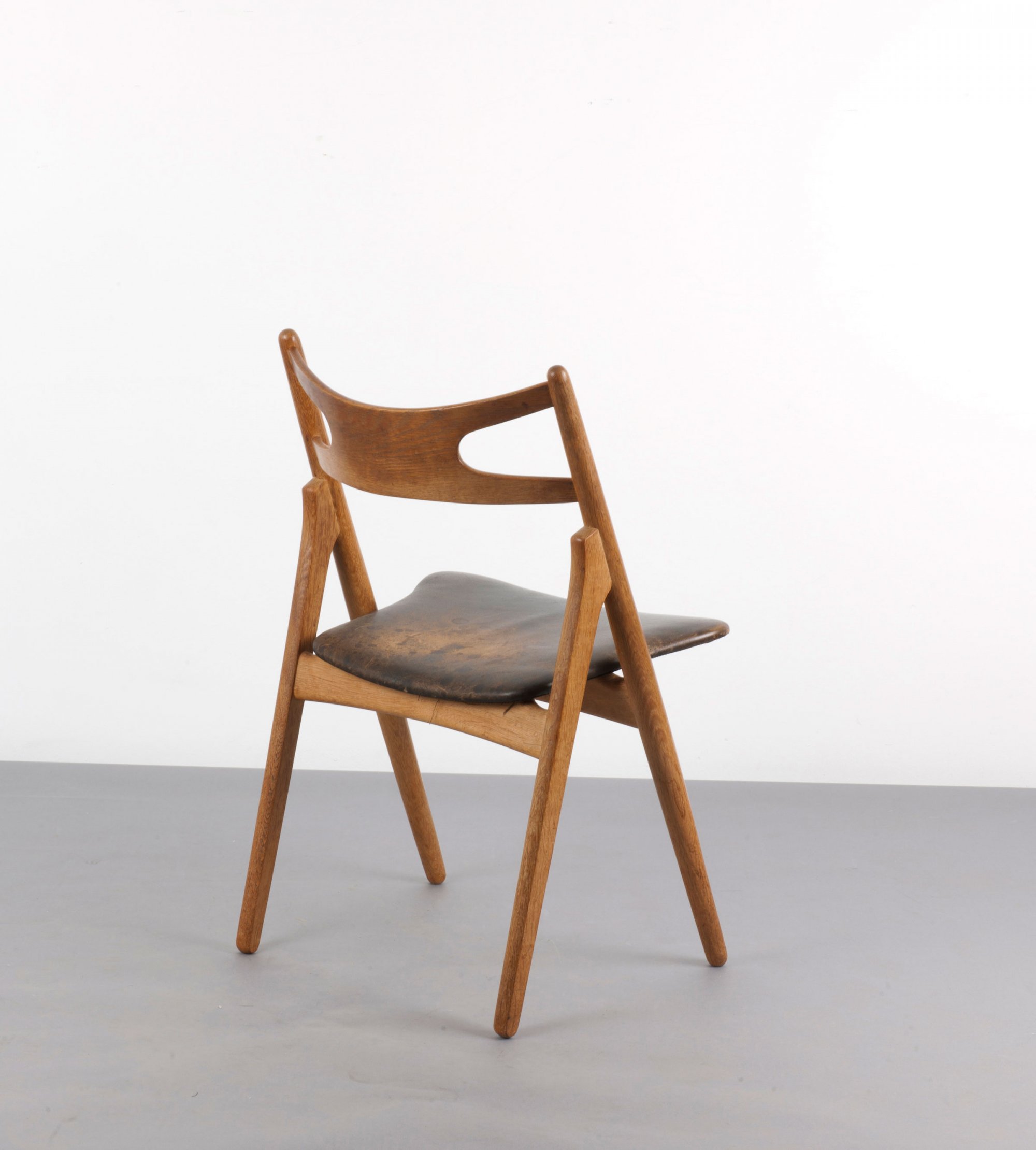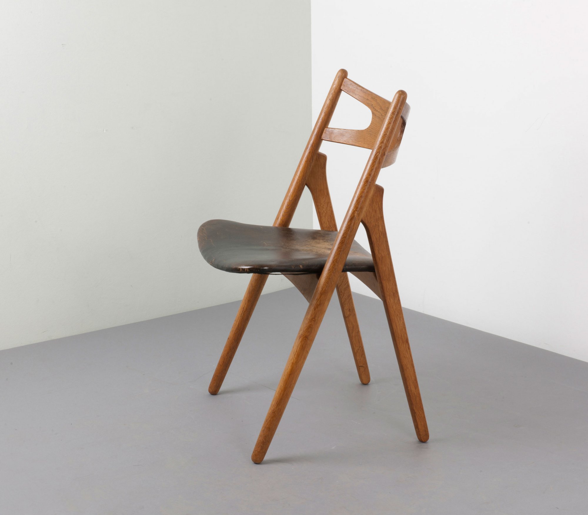 Hans J. Wegner. 'CH 29' chair, 1951. H. 81.5 x 51 x 48 cm. Made by Carl Hansen & Son, Aarup. Oak, plywood, black leather. Marked: Maker's mark with designer's data.