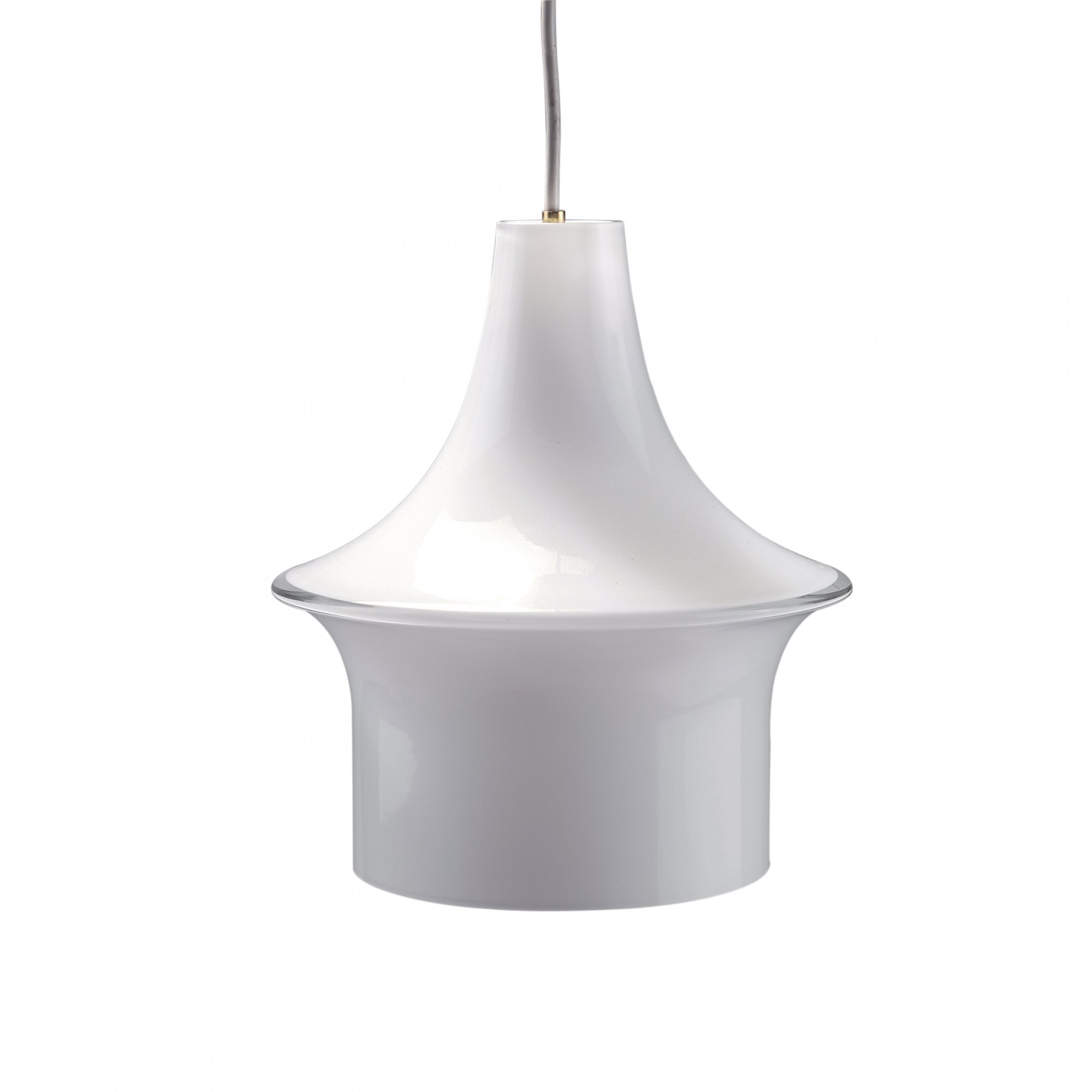 Lisa Johansson Pape. 'Pagodi' ceiling light, 1960. H. 27.5 cm; D. 25 cm. Made by Iittala, Kalvola. Cased glass, clear and white.