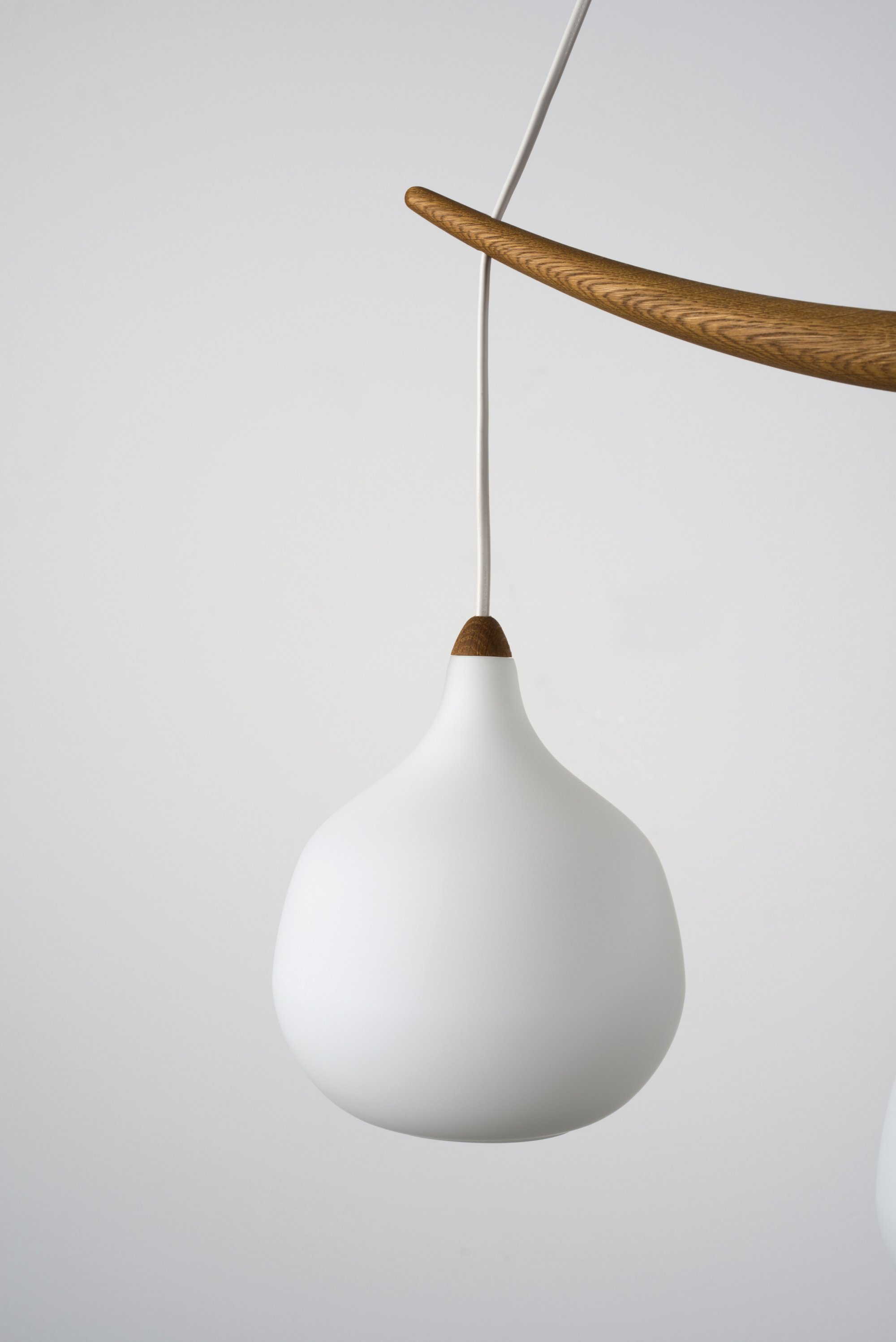 Uno Kristiansson; Östen Kristiansson. '512' ceiling light, c1960. H. 88 x 32 x 32 cm; D. 16 cm. Made by Luxus, Vittsjö. Teak, white glass.