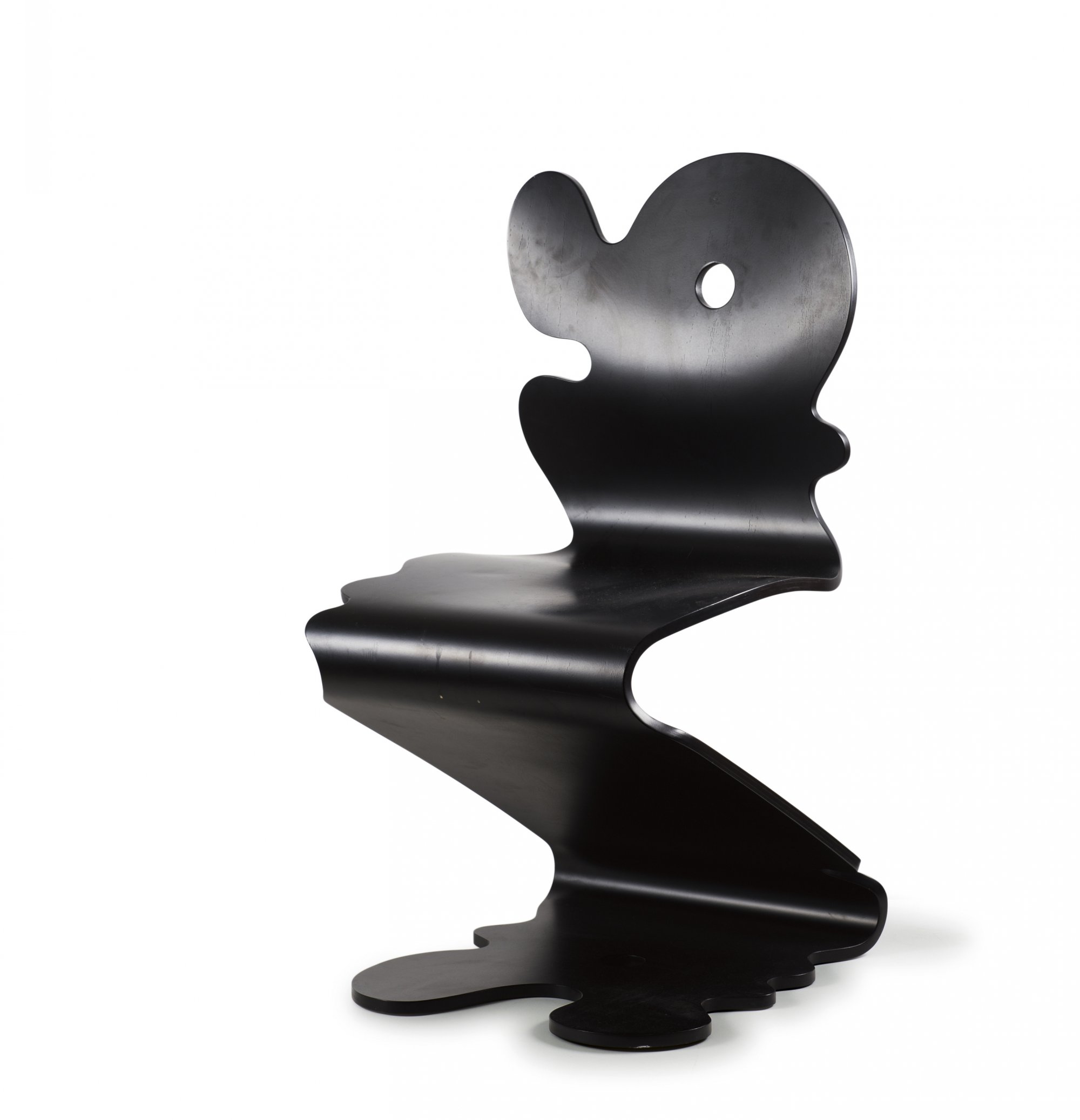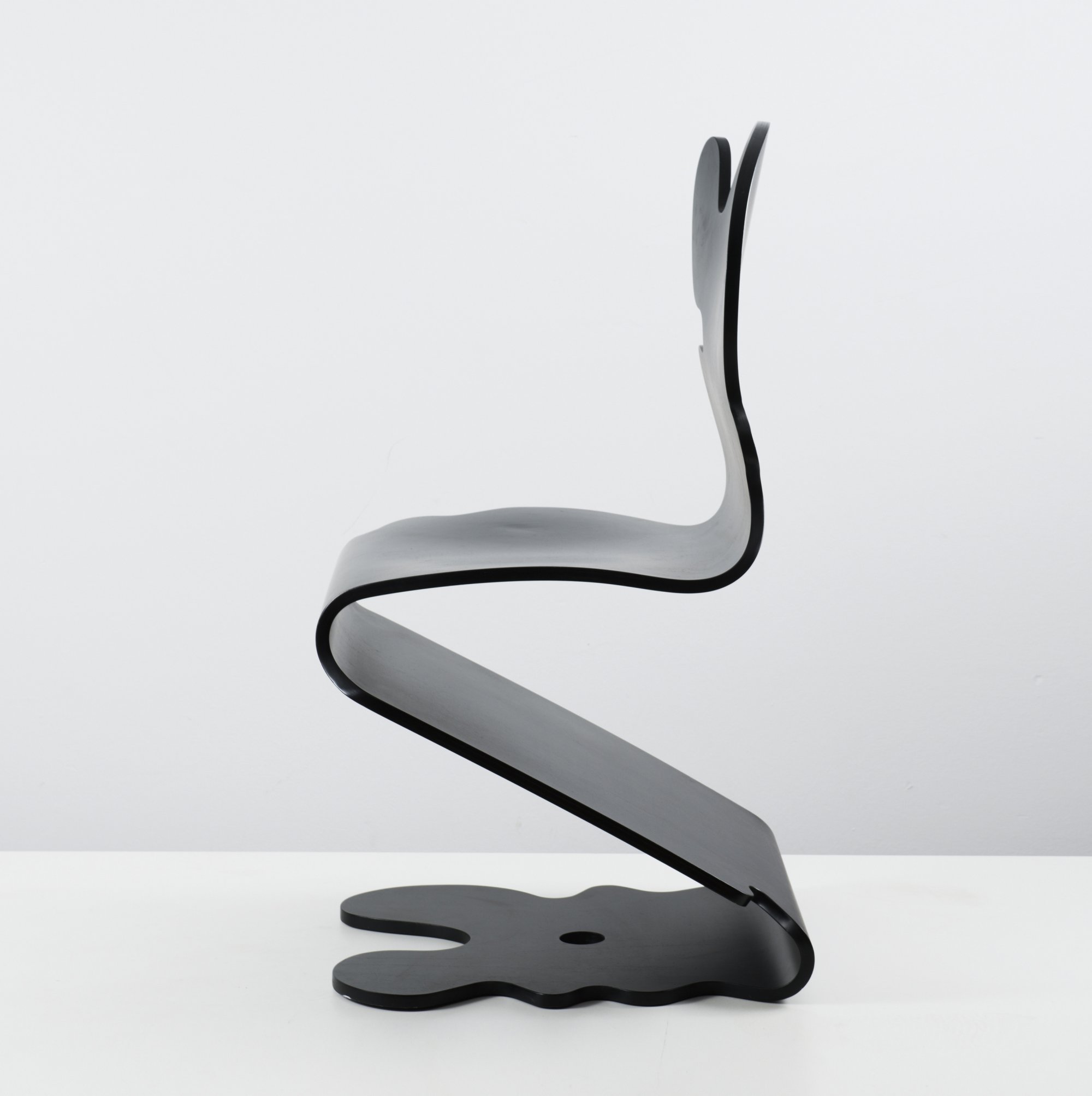 Verner Panton. 'Pantonic' chair, 1992. H. 91.5 x 45 x 53 cm. Made by Studio Hag, Norway. Beech plywood, painted black.