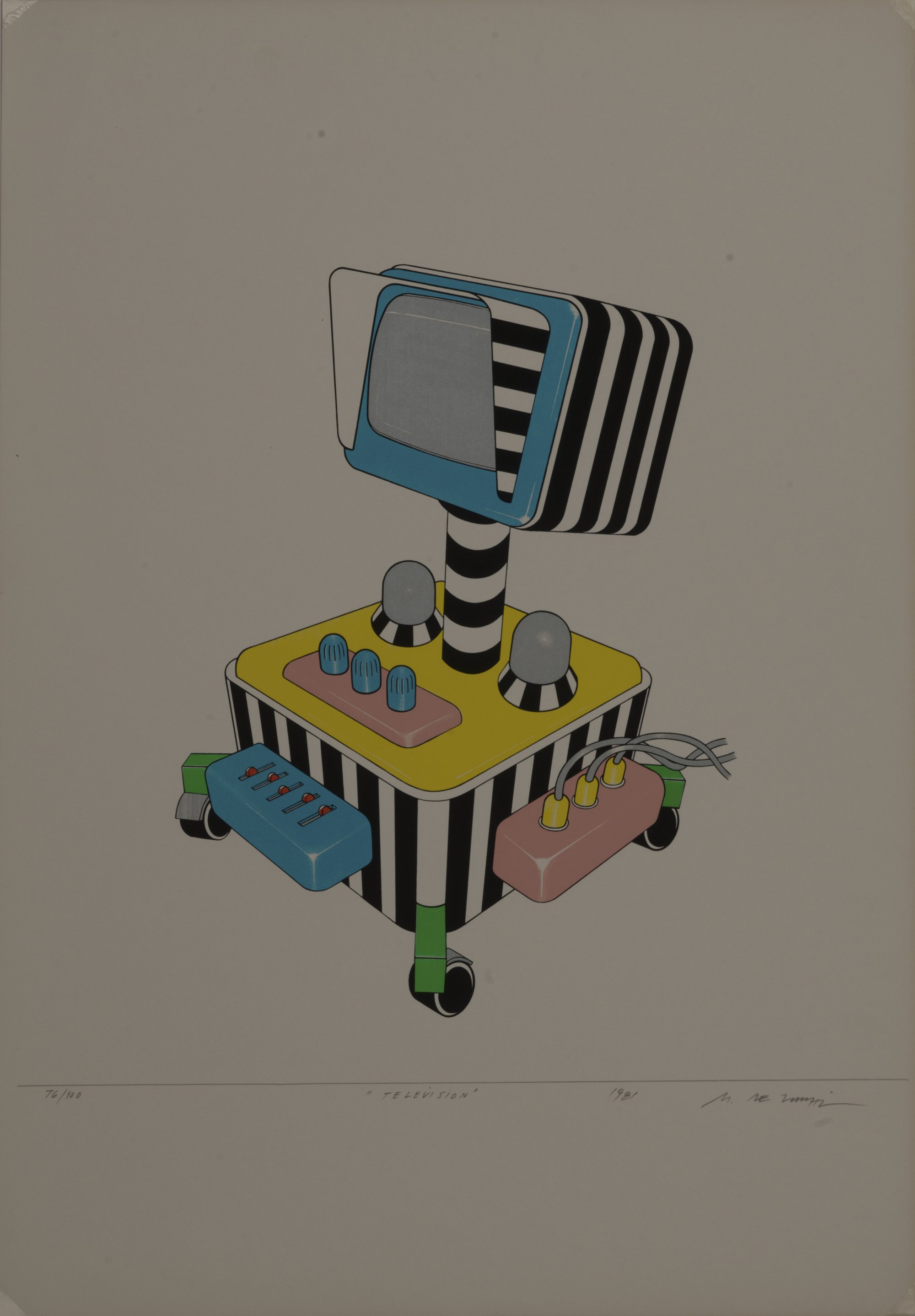 Michele de Lucchi. 2 works: 'Portable Radio and Tape Recorder'/ 'Television', 1981. 70.0 x 50.0 cm each. Colour serigraphs on laid paper. Signed: M de Lucchi, 1981, titled, numbered. No. 73 from an edition of 76 resp. 100.