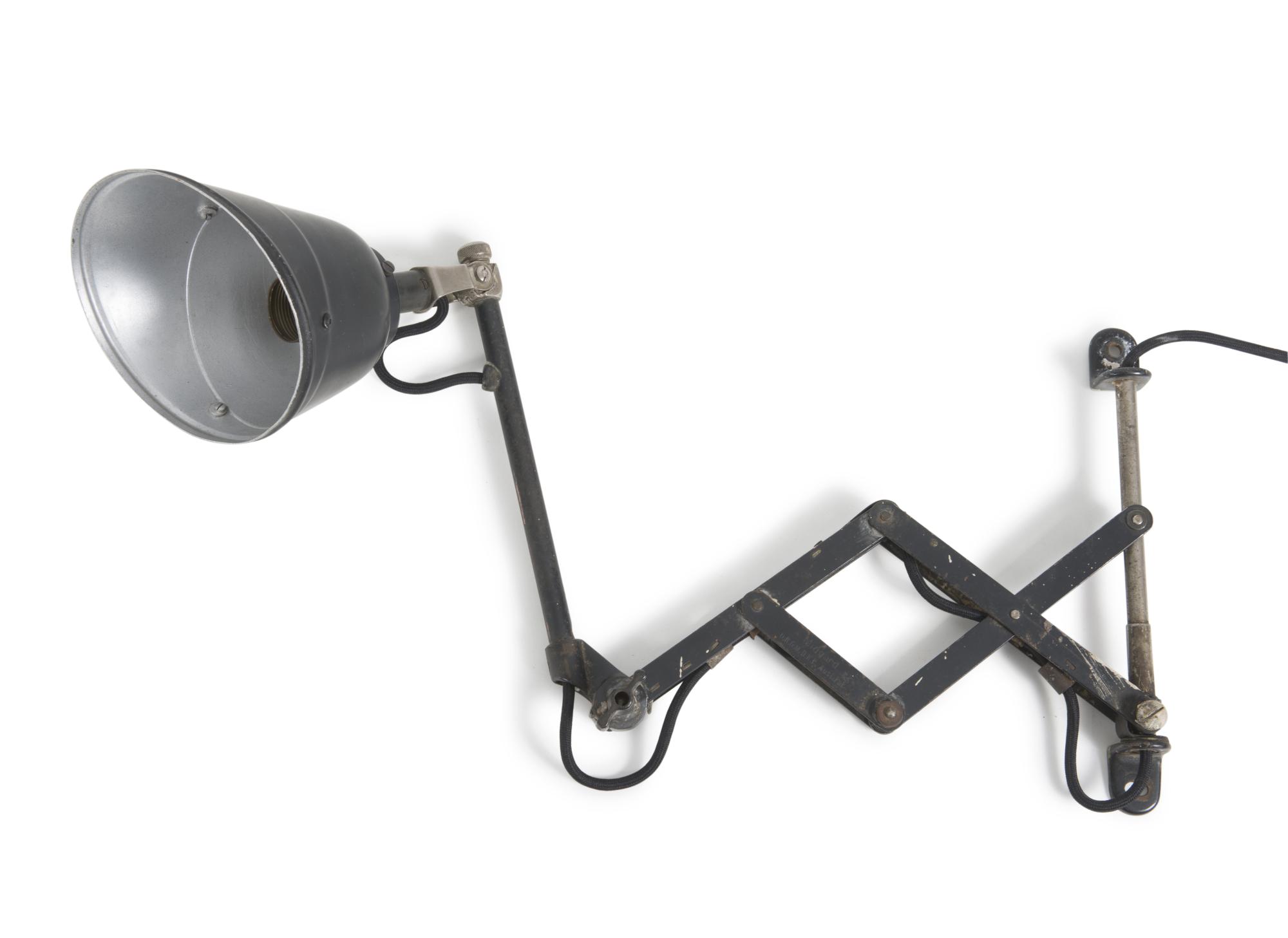 Curt Fischer. 'Midgard' extensible light, 1926. H. 29 x 88 x 15.5 cm. Made by Auma, Rönneberger & Fischer. Sheet aluminium, nickel-plated tubular steel, painted black, plastic. Marked: Midgard, D.R.G.M. D.R.P. Ausl. Pat.
