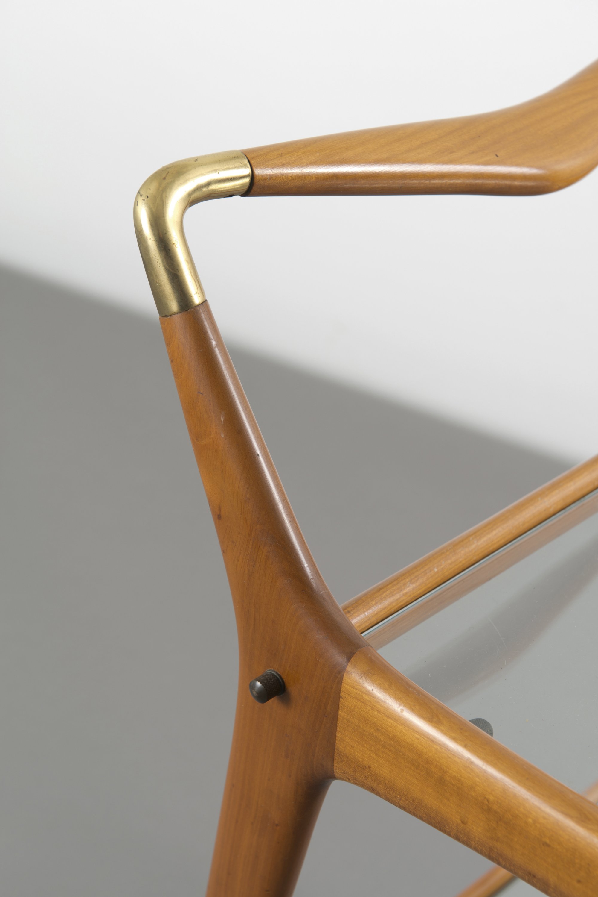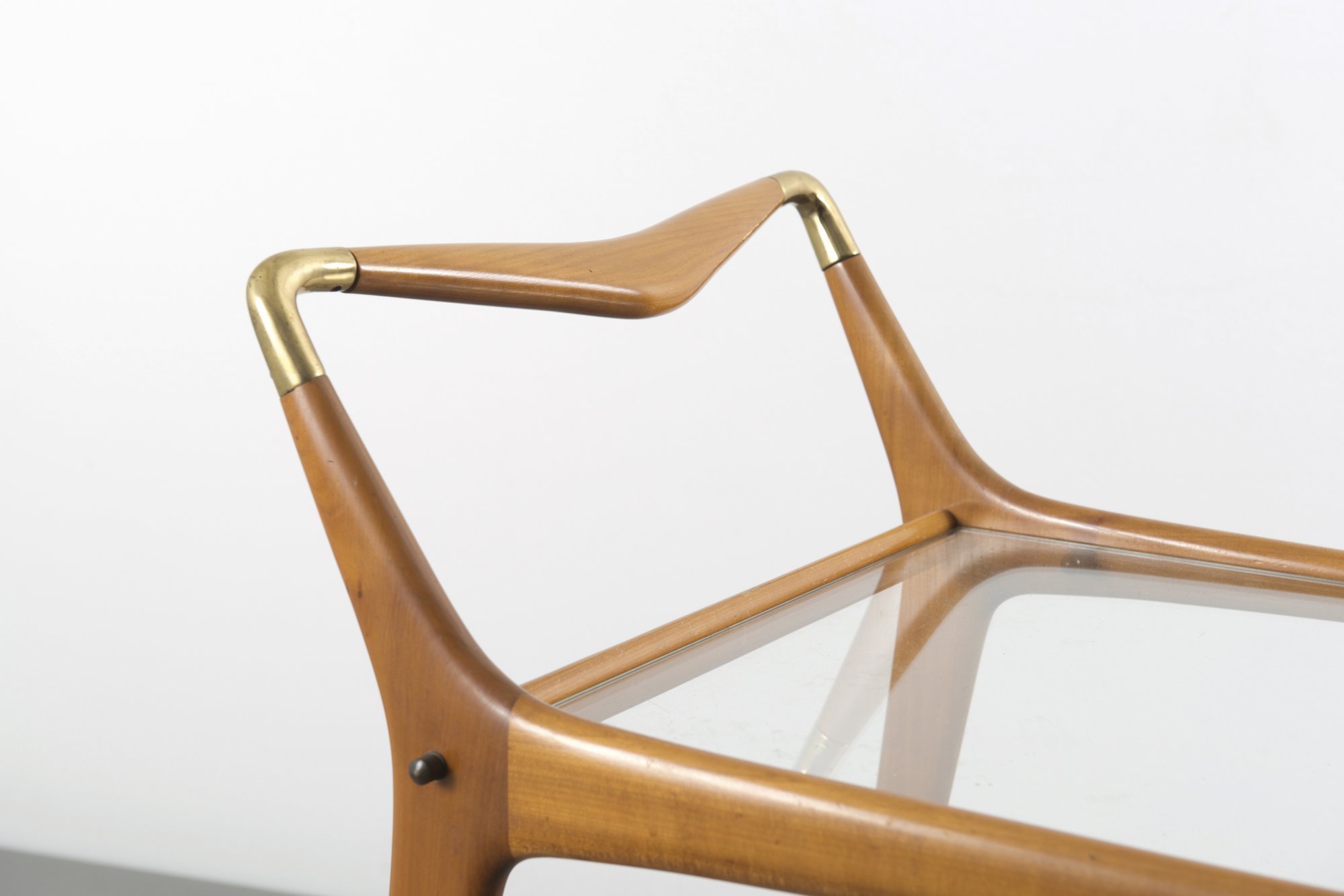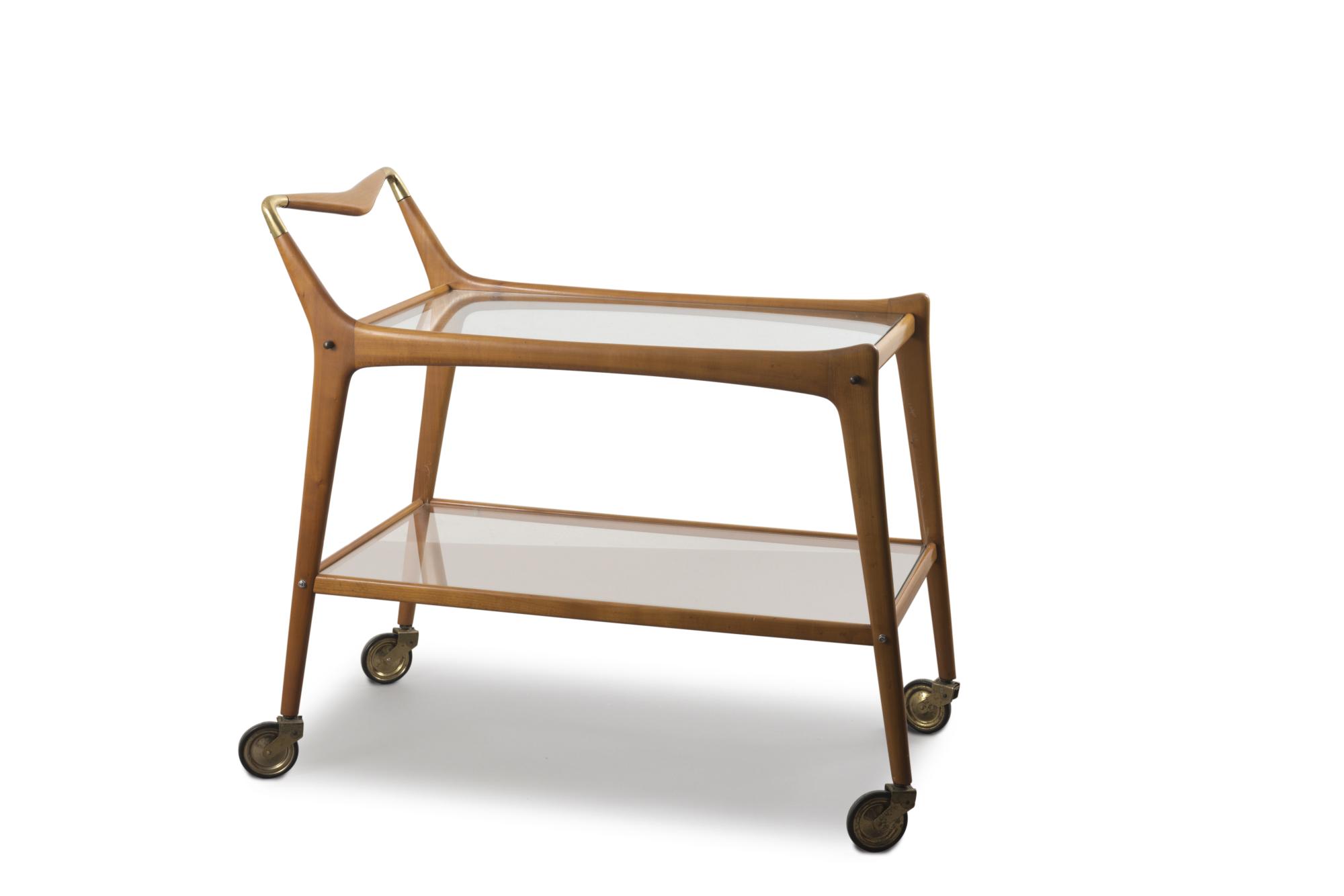 Cesare Lacca (attributed). Serving cart, 1950s. H. 78 x 44 x 85 cm. Made by Cassina, Milan (attributed). Beech, sheet brass, clear glass.