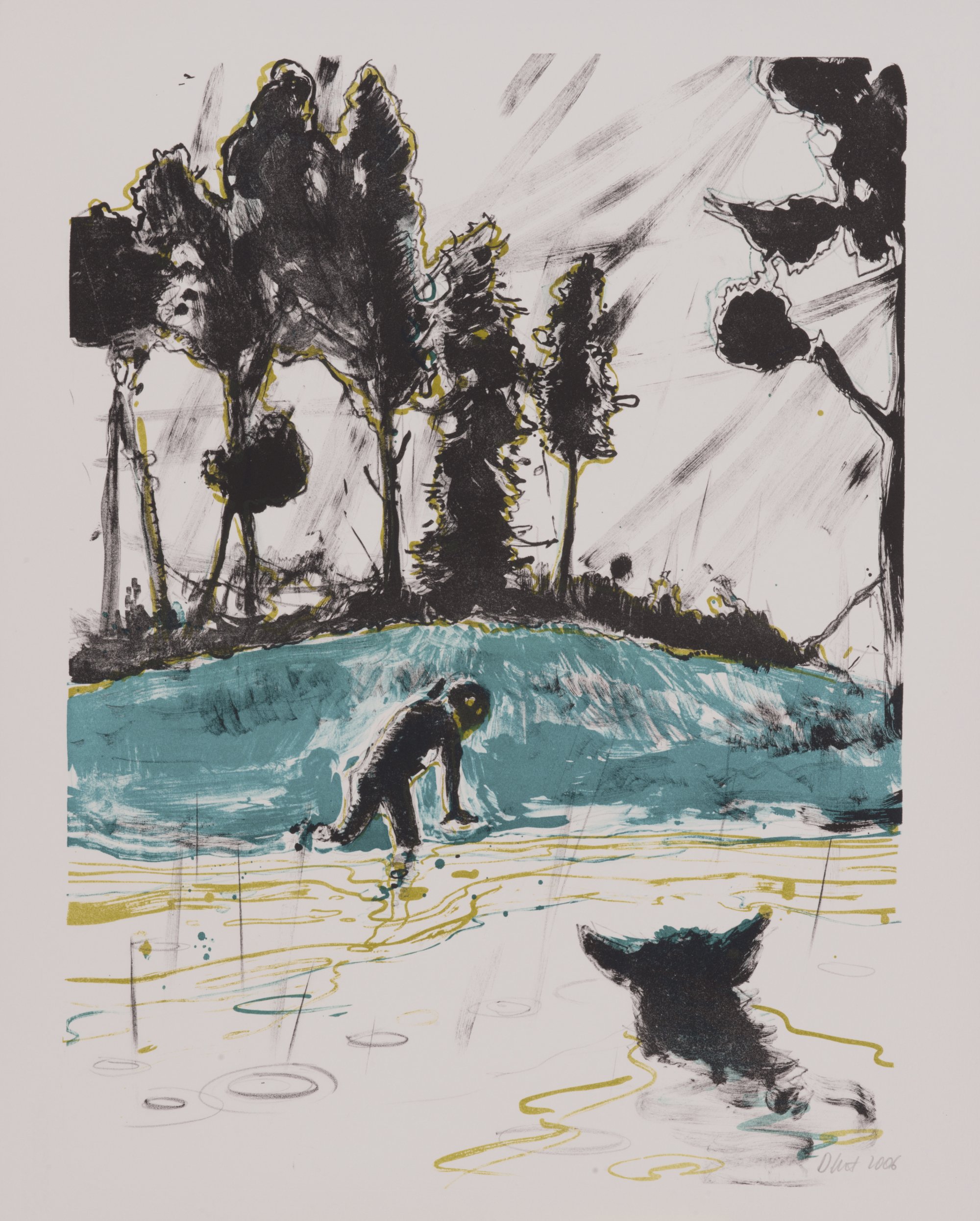 Daniel Richter. 'Hundewasser', 2006. 64.0 x 48.5 cm (depiction), 75.5 x 57.0 cm (paper). Colour lithograph on Somerset laid paper. Monogram D. Rt, 2006. Published at griffelkunst.