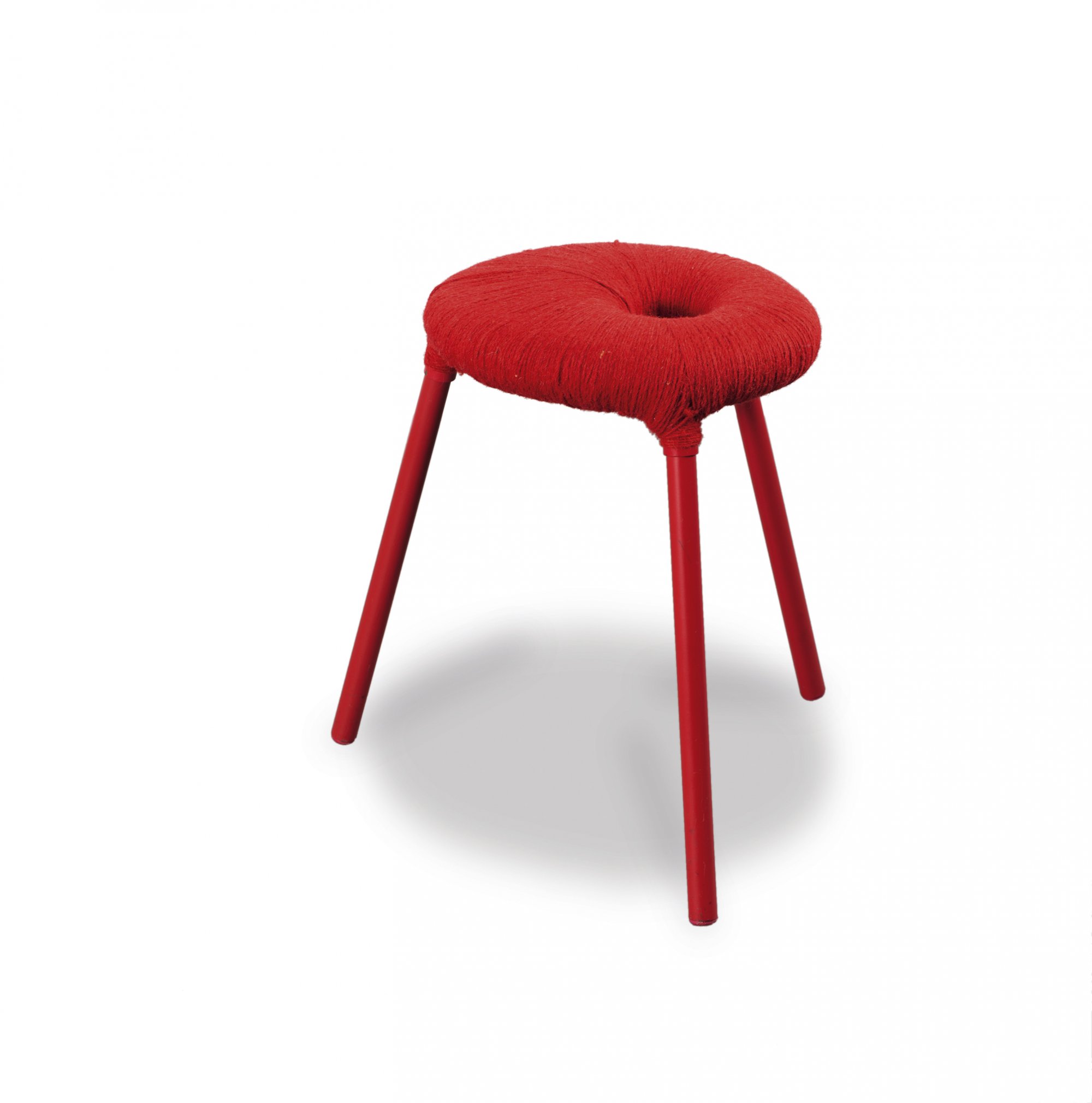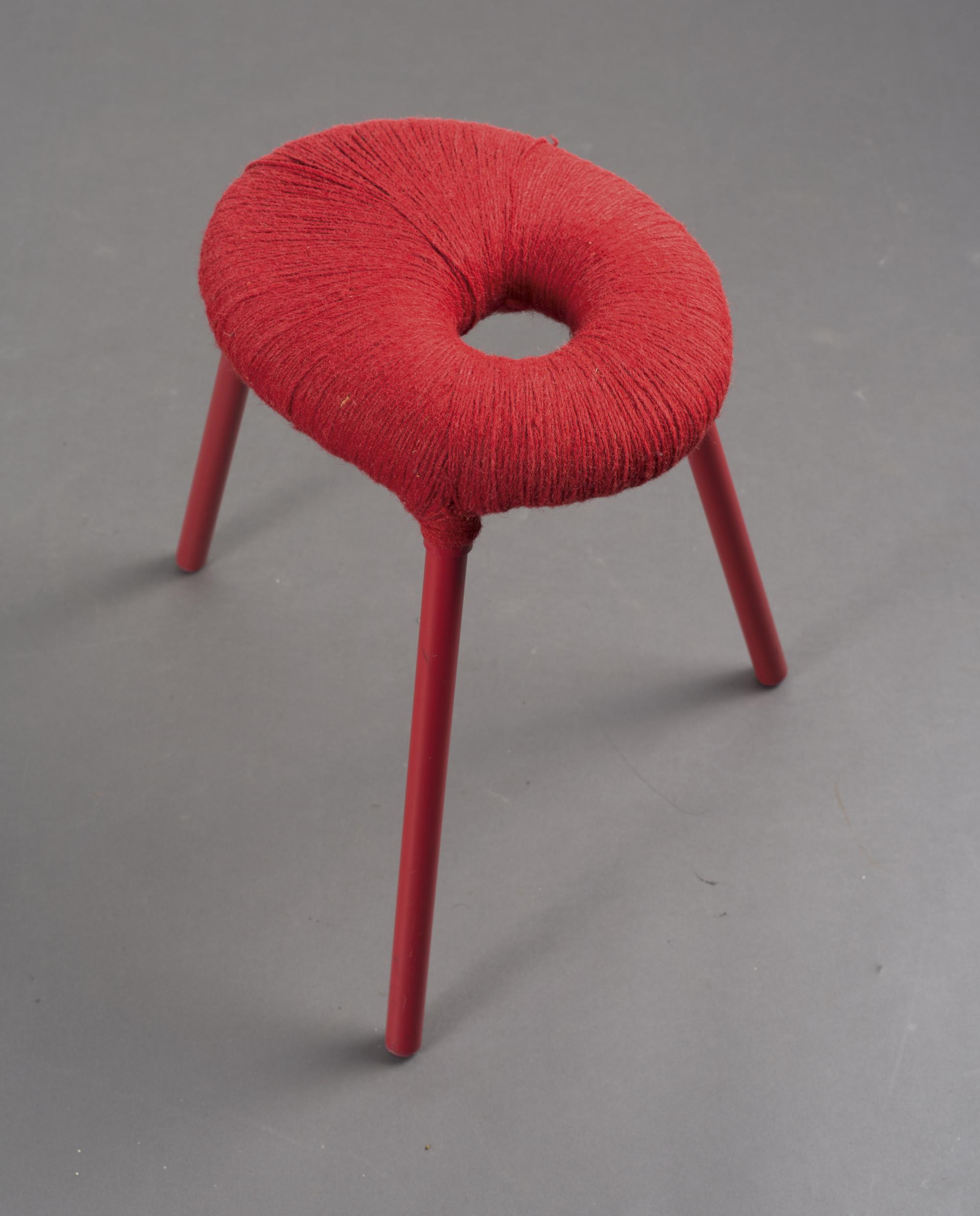 Graeme Findlay; Carmel McElroy. Three 'Eskilstuna' stools from the IKEA PS series 2006, 2006. H. 46 x 37.5 x 38 cm. Made by Ikea, Älmhult. Tubular steel, painted red, red wool.