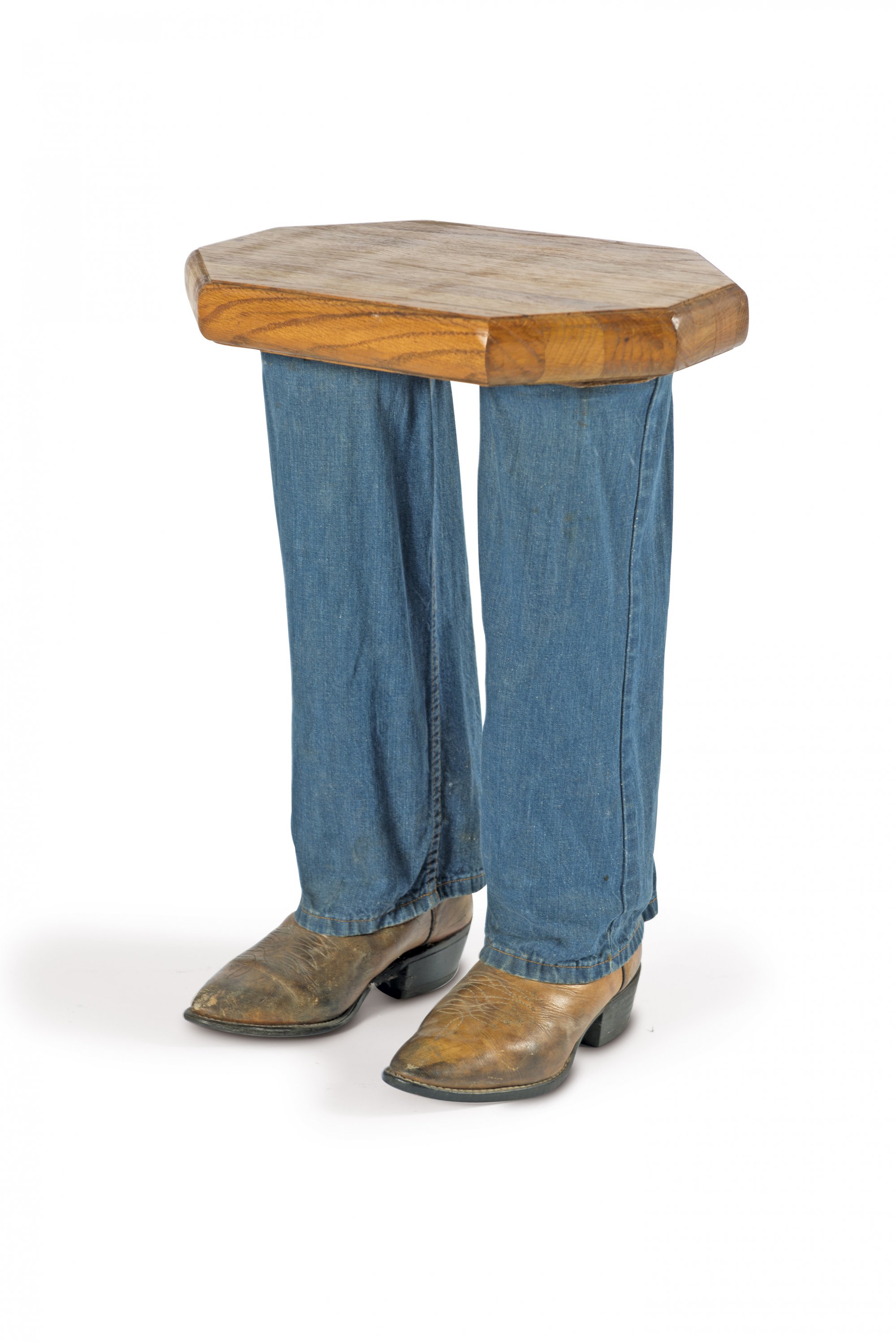 J. M. Houska. 'The Western' stool, 1984. H. 58.5 x 40 x 33 cm. Made by J. M.'s Taxidermy, Besque Farms, N. M. Marked: J.M.'s Taxidermy 1570 West Besque Loup Besque Farms N.M. #7068 (565)869-6433 "We Will Mount Your Boots". AS FEATURED IN PLAYBOY MAGAZINE copyright 1984 J. HOUSKA.
