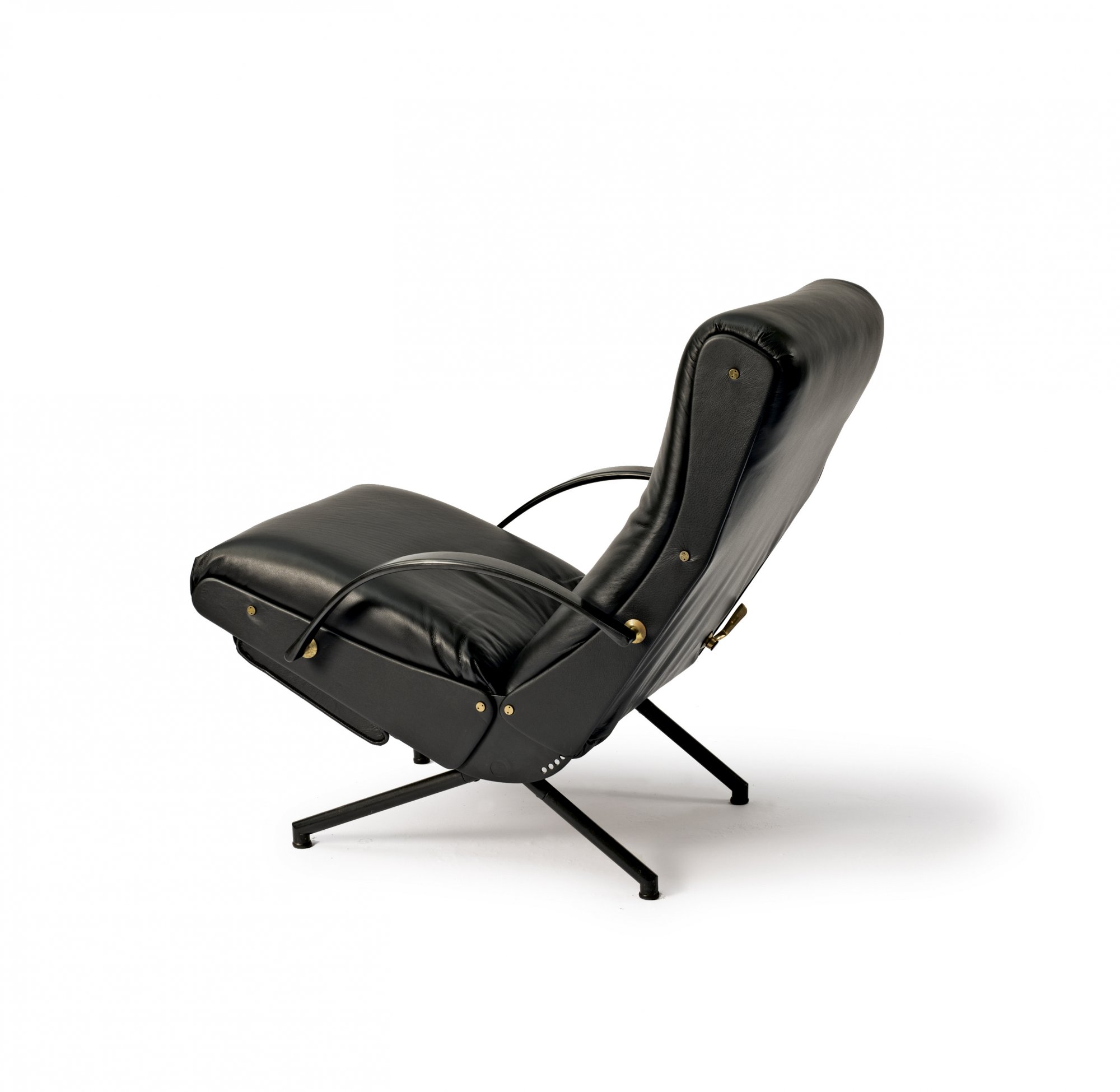 Osvaldo Borsani. 'P 40' armchair, 1955. H. 69.5 x 70.5 x 133 cm. Made by Tecno, Milan. Tubular steel, painted black, brass, black leather. Marked: Tecno badge.