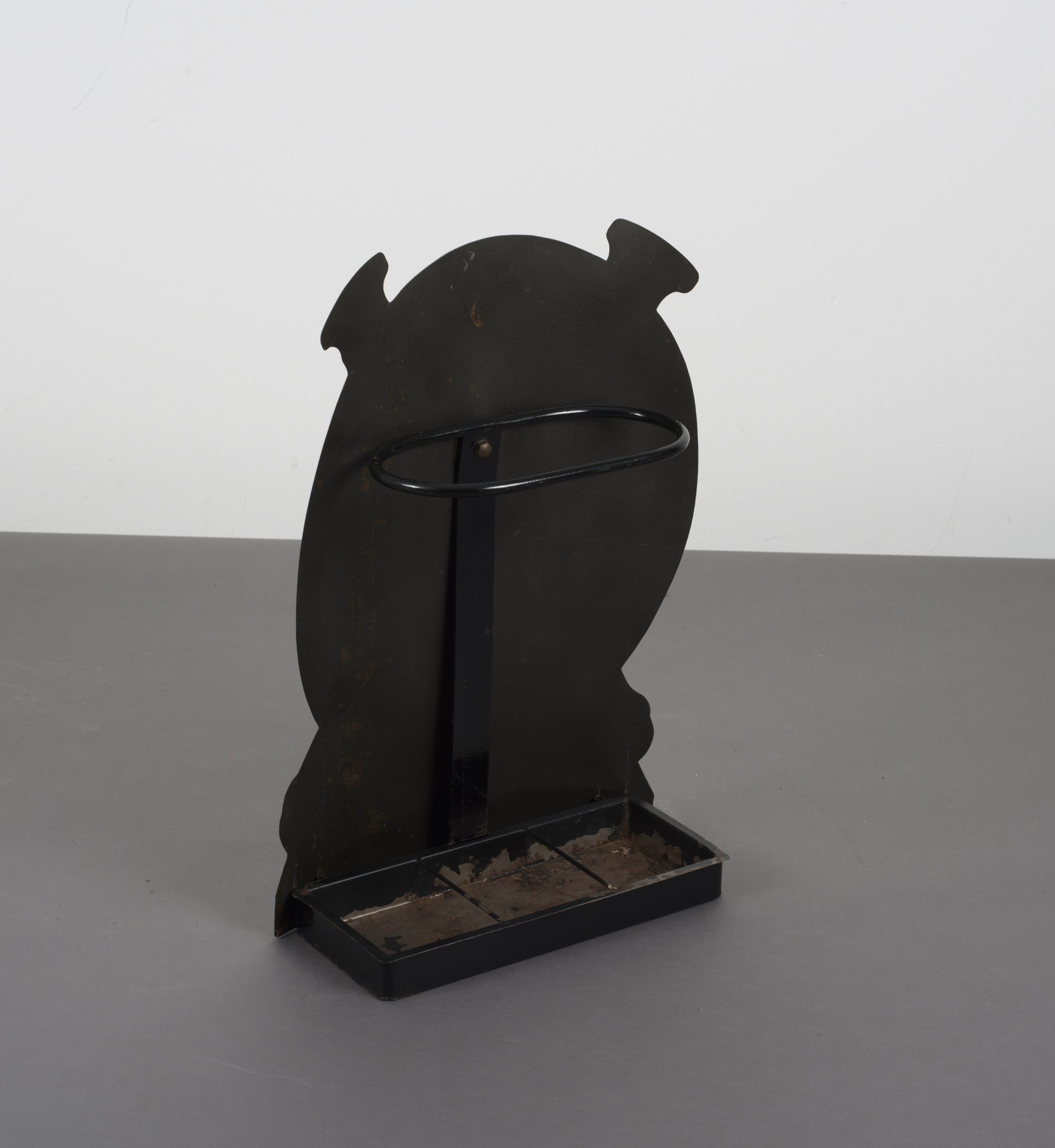 Piero Fornasetti. 'Tamburo' umbrella stand, 1950s. H. 61 x 39.5 x 16 cm. Made by Fornasetti, Milan, in the 1950/60s. Cast iron base, painted black, sheet metal, printed pattern.