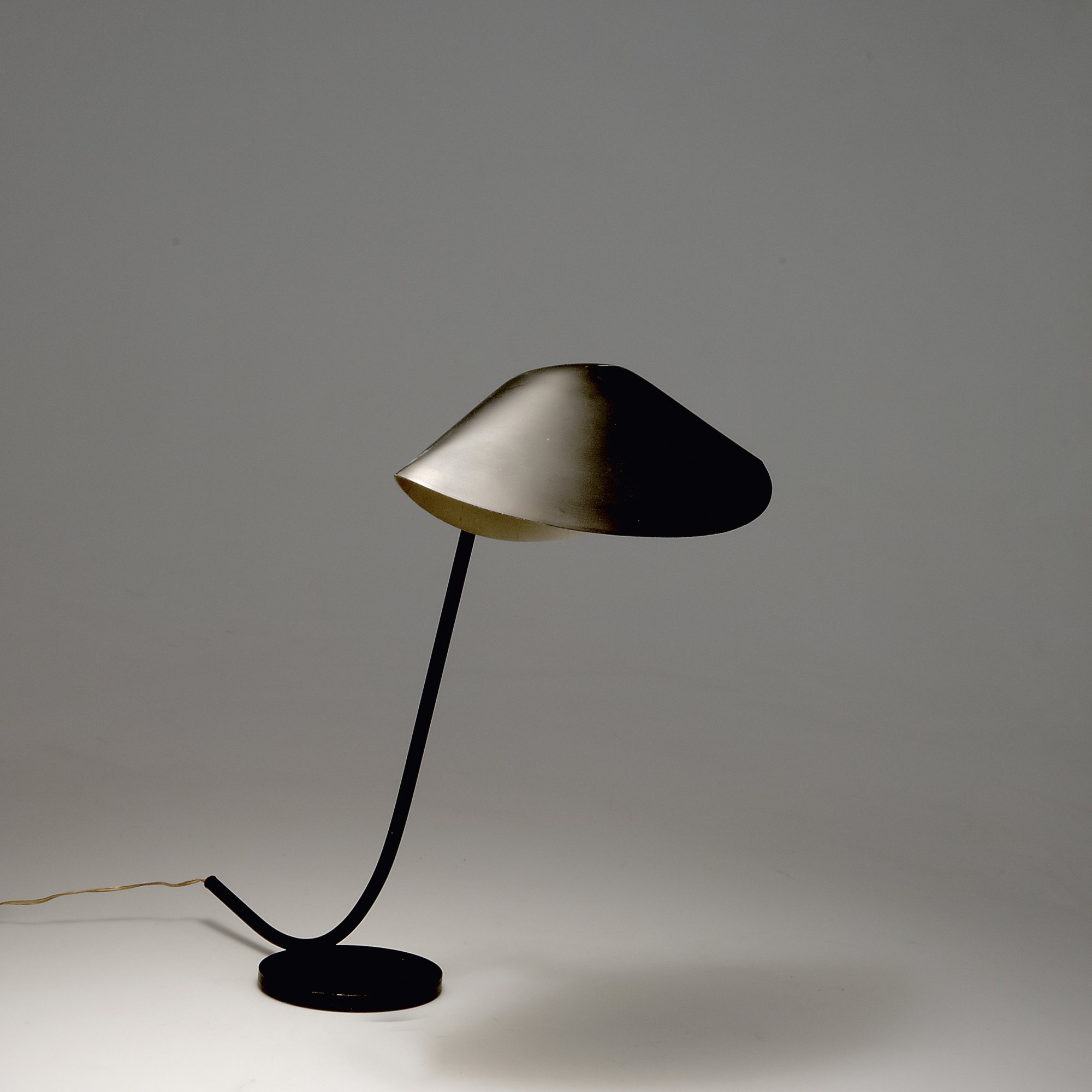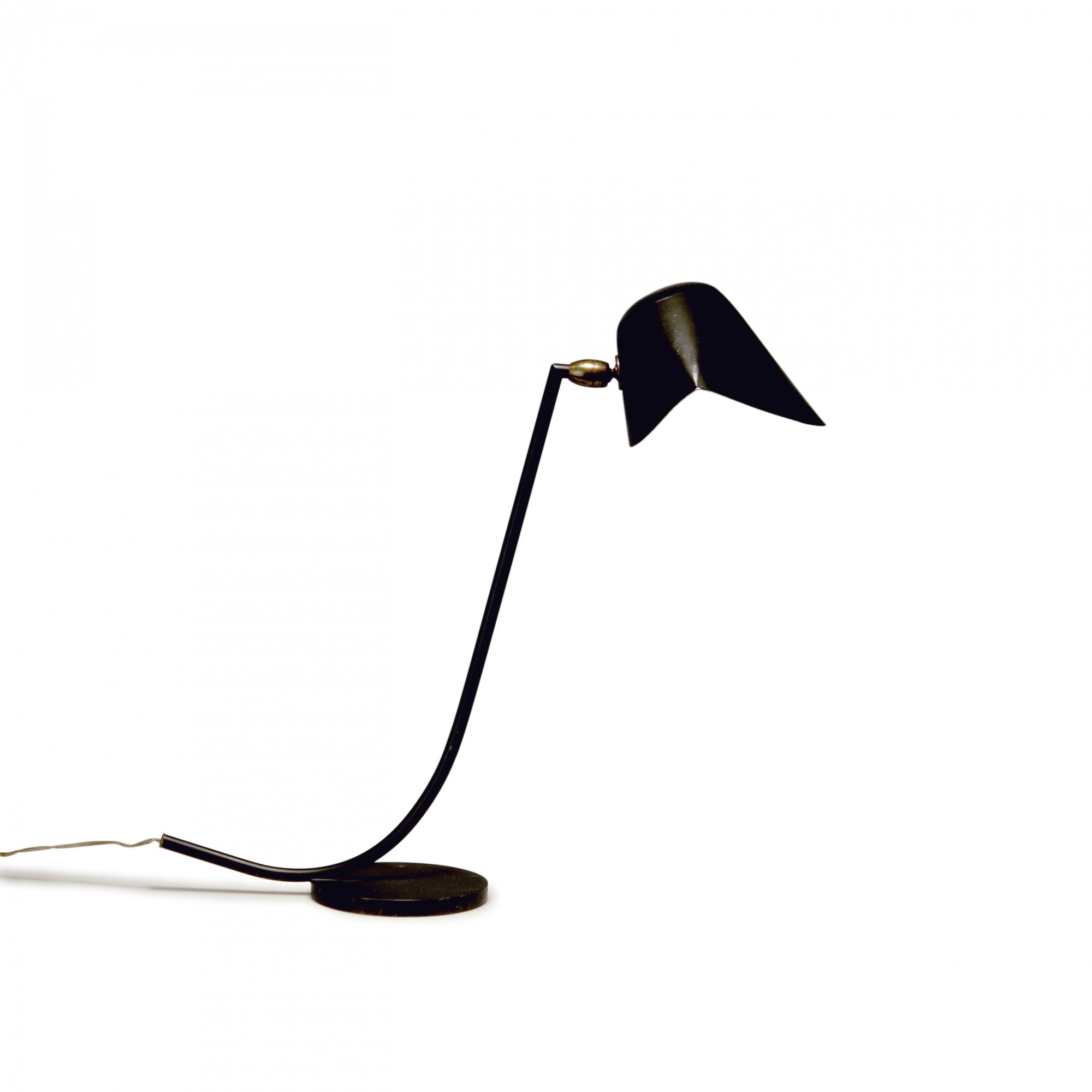 Serge Mouille. 'Anthony' table light, 1955. H. 46 cm; L. 30 cm. Made by Steph Simon, Paris. Sheet aluminium, painted black and white, brass, tubular steel, painted black.