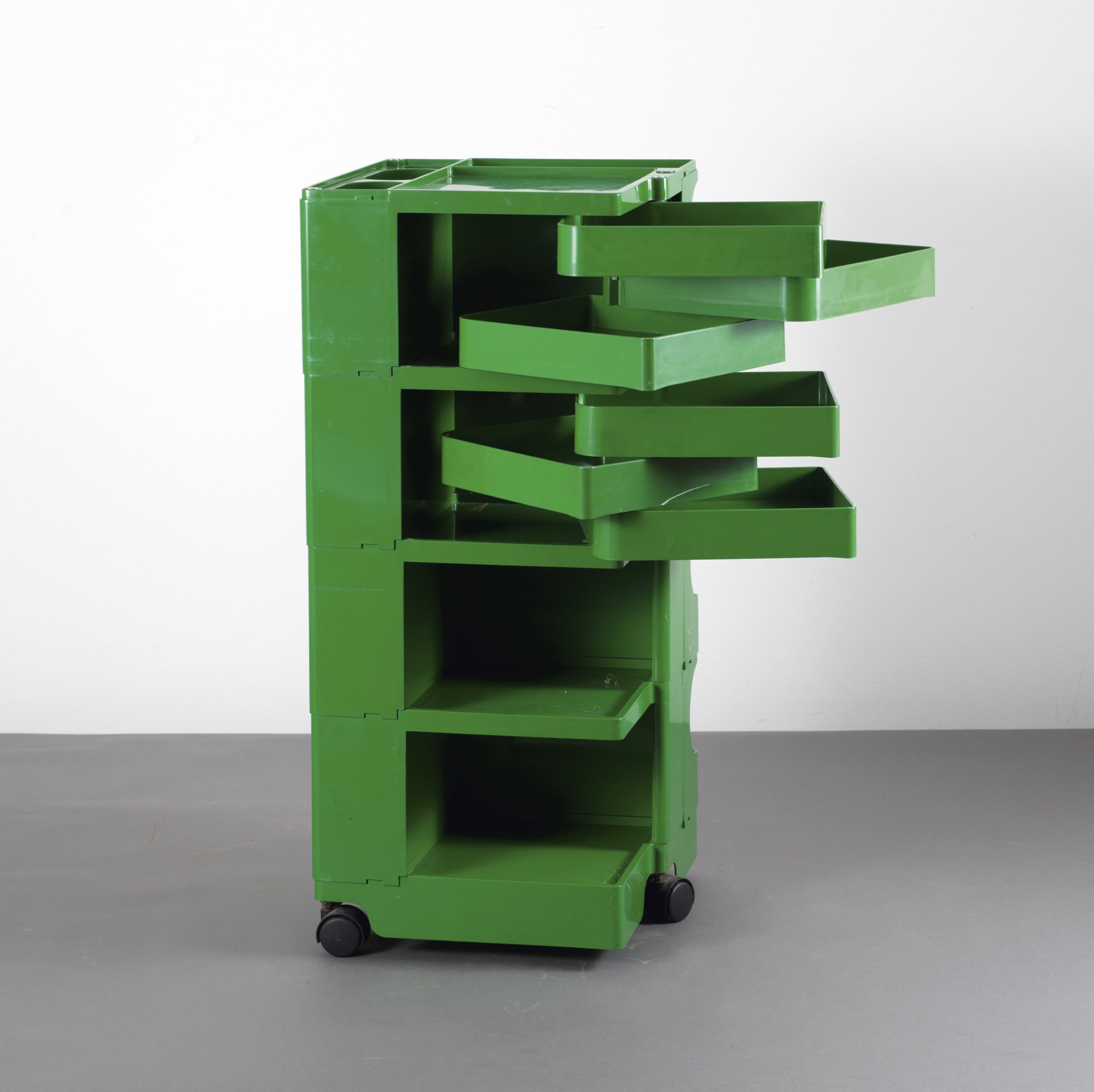 Joe Colombo. Large 'Boby' container on wheels, 1970. H. 94.5 x 43 x 41 cm. Made by Bieffeplast, Padua. Green plastic.