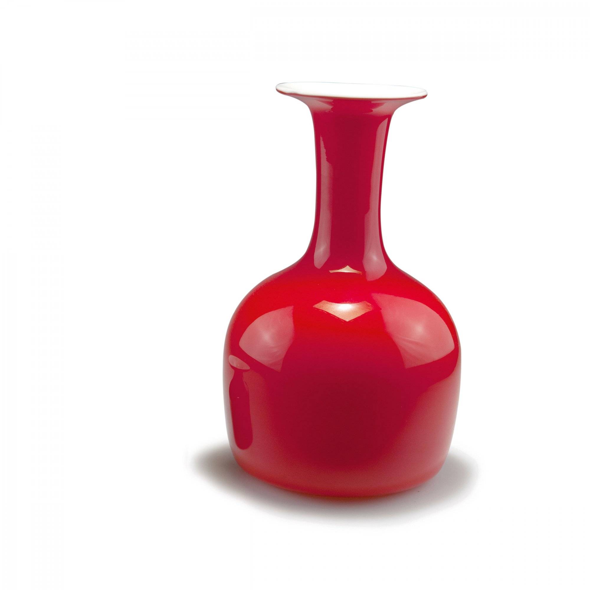 Michael Bang. Vase, c1969. H. 33.3 cm. Made by Holmegaard Glasvaerk, Copenhagen. Cased glass, opal white and red.