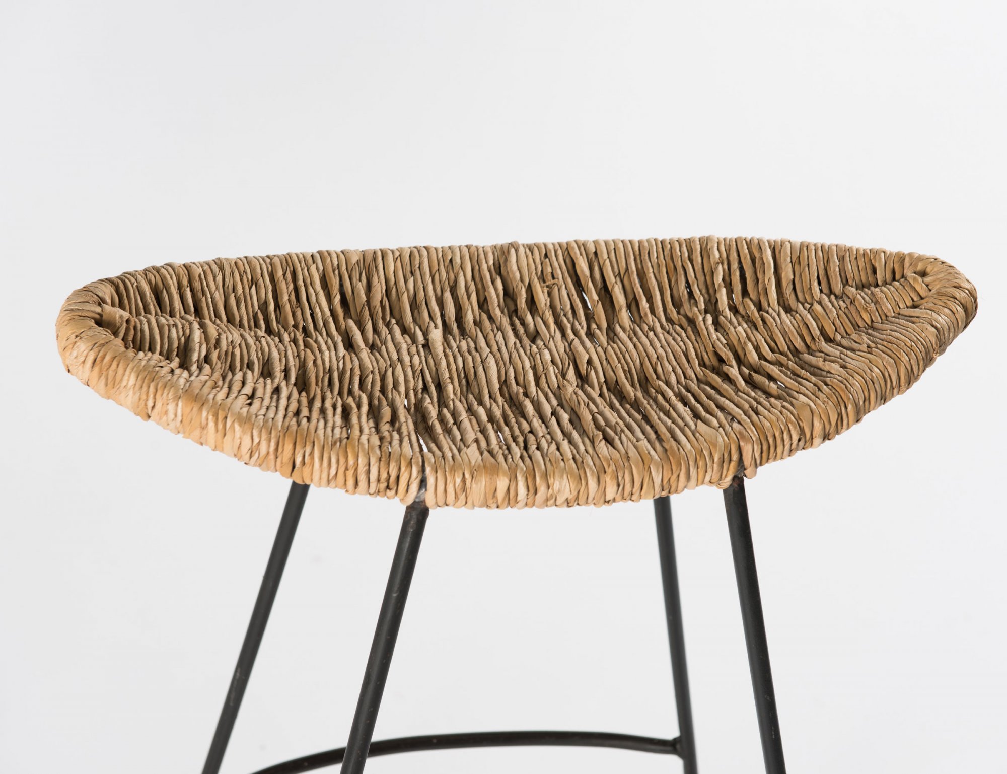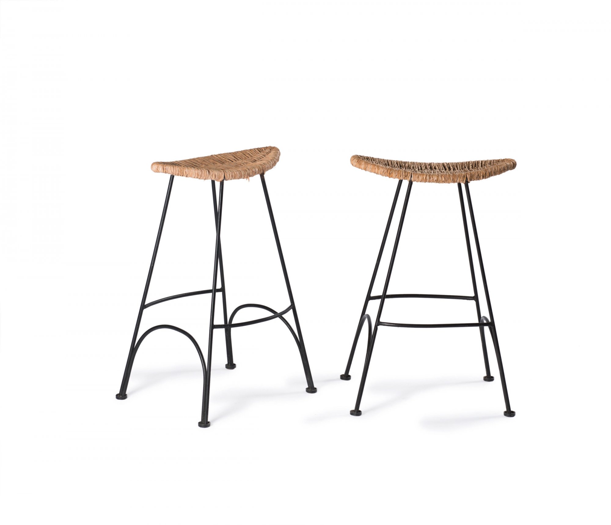 Tom Dixon. Pair of 'Banana' bar stools, 1988. H. 80 x 52 x 43 cm. Made by Cappellini, Milan. Metal rods, lacquered darkgrey, reedwork.