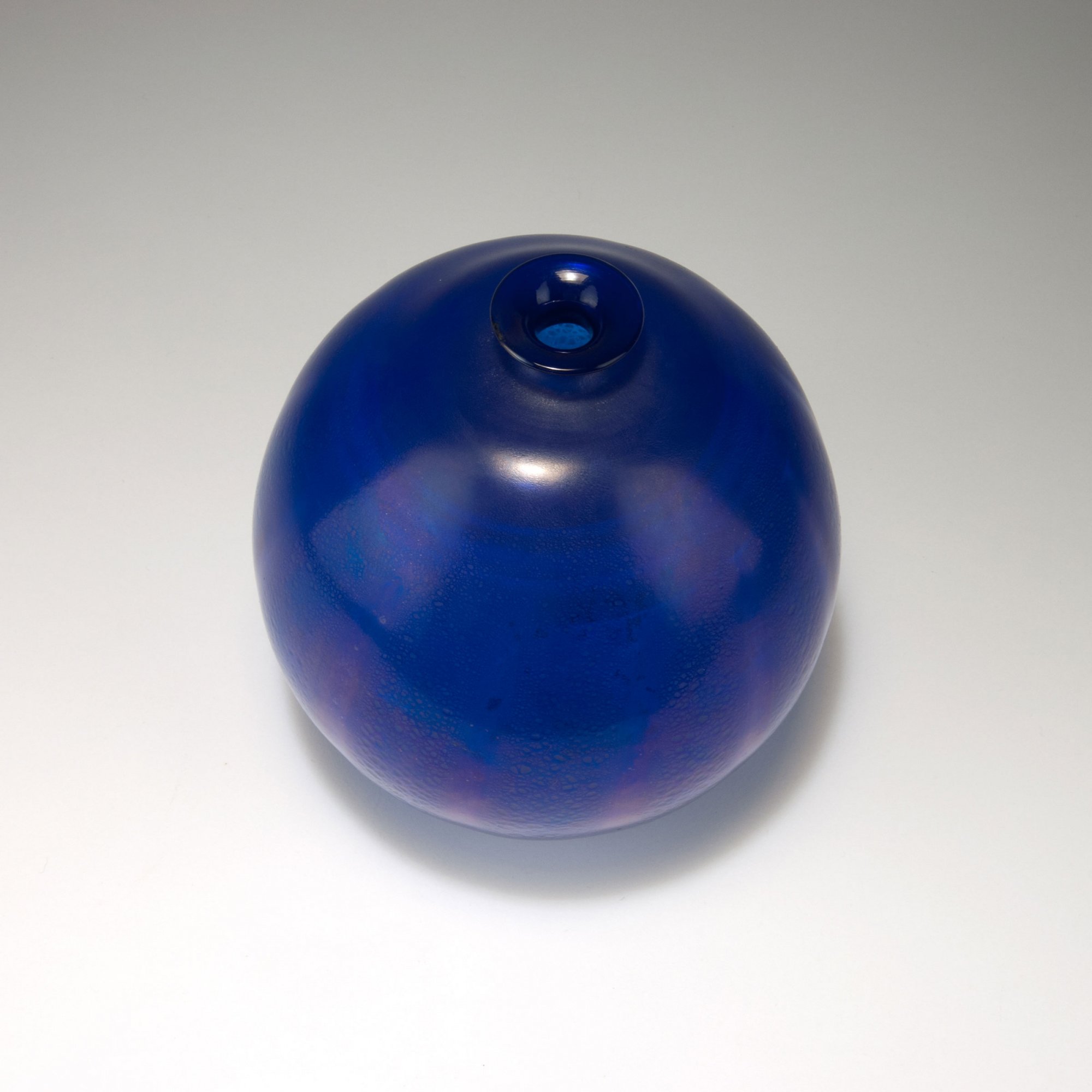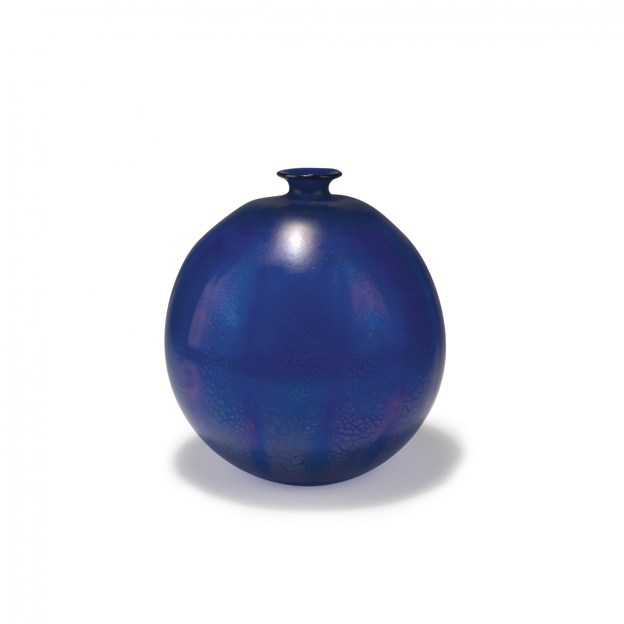 Andries Dirk Copier. 'Unica' vase, 1926. H. 19.1 cm. Made by Leerdam Glasfabriek. Cobalt blue glass, optically blown, fused crushed glass, matt iridescent. Marked: 1926 LEERDAM UNICA AD Copier 9/4 (diamond cut).
