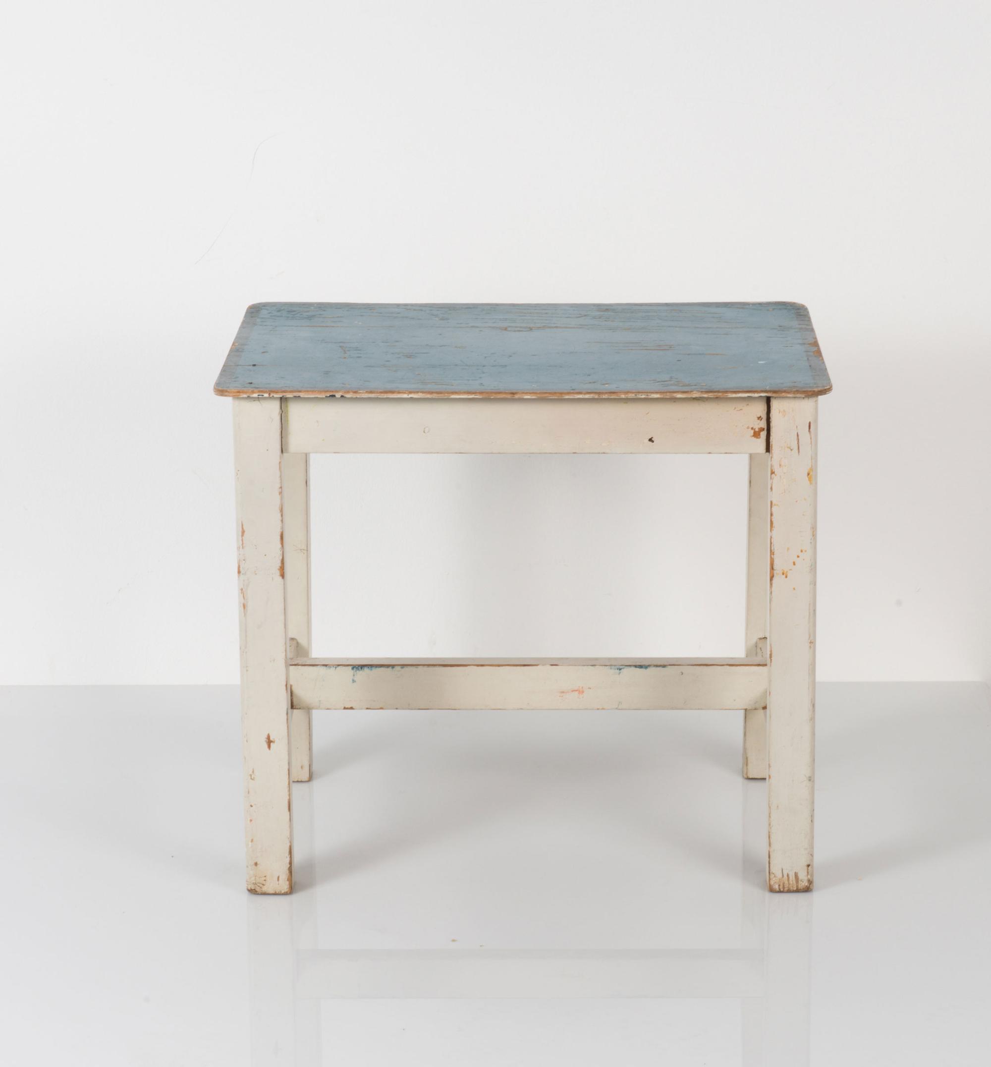 Haagse School. Child's table and chair, c1930. Table: H. 50 x 57.5 x 42.3 cm; chair: H. 65 x 30.5 x 37.7 cm. Wood, plywood, painted white, blue and yellow.