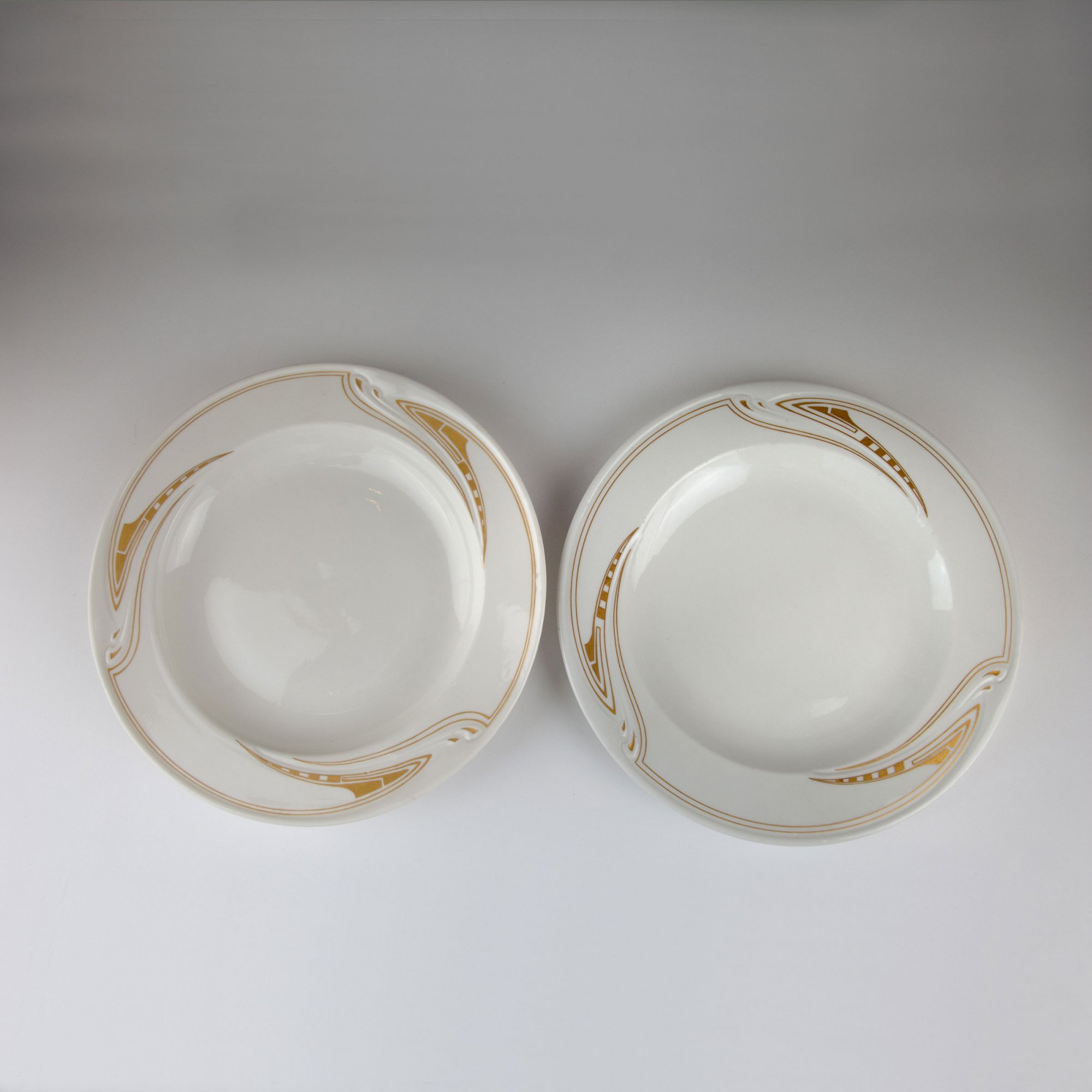 Henry van de Velde. 'Whiplash' dining plate, 1903. D. 26.8 cm. Made by KPM Meissen, prior to 1924. Porcelain, white, glazed, gold décor. Marked: Maker's mark, artist's signet, number.