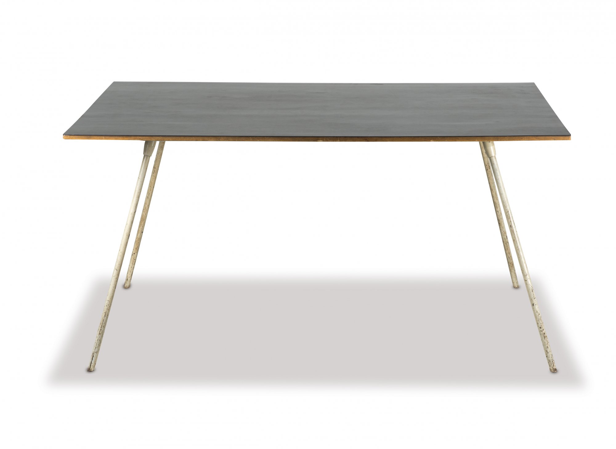 Otl Aicher. Four prototype chairs and a table, c1955. Table: H. 65.5 x 78 x 130 cm; chairs: H. 70-72.5 x 59 x 58-61.5 cm. Tubular steel, painted white and black, plywood, black and white Formica.