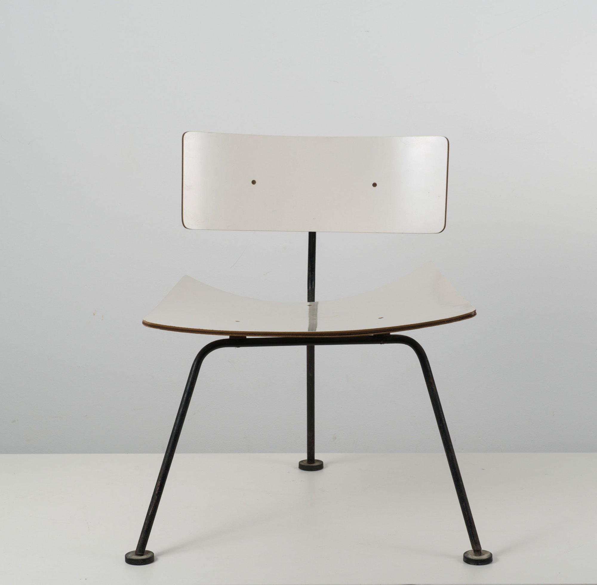 Otl Aicher. Prototype easy chair, c1955. H. 70.5 x 59 x 53.5 cm. Tubular steel, painted white, plywood, black Formica.