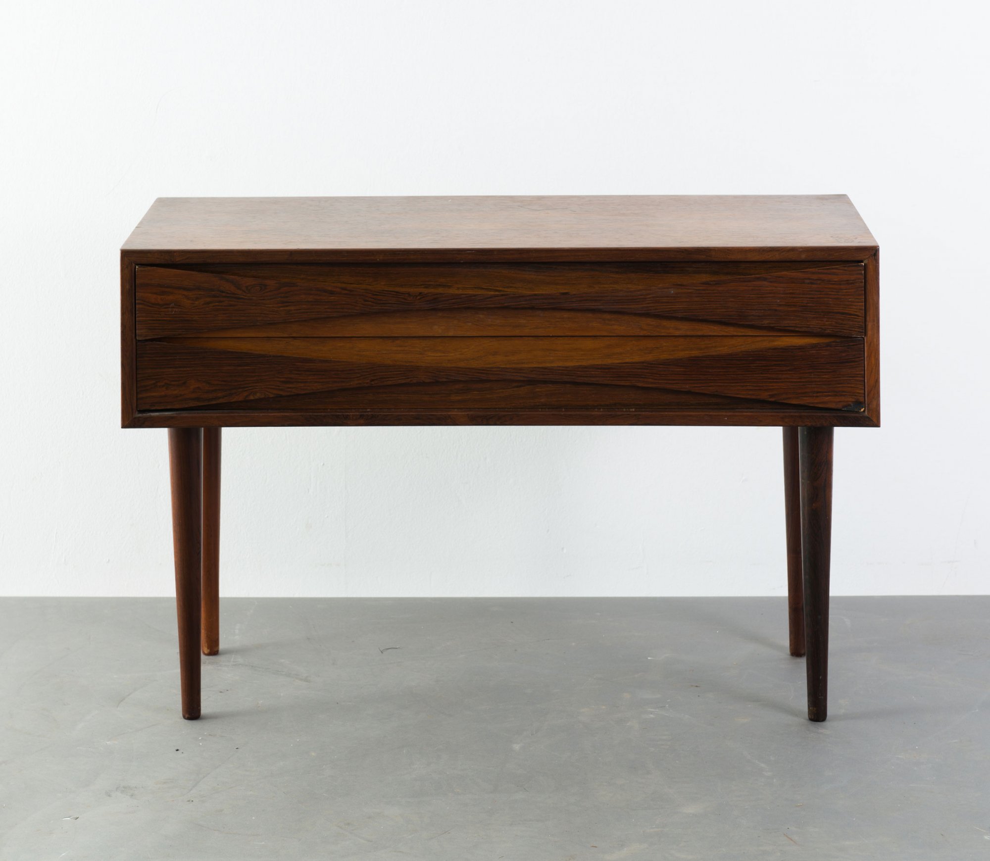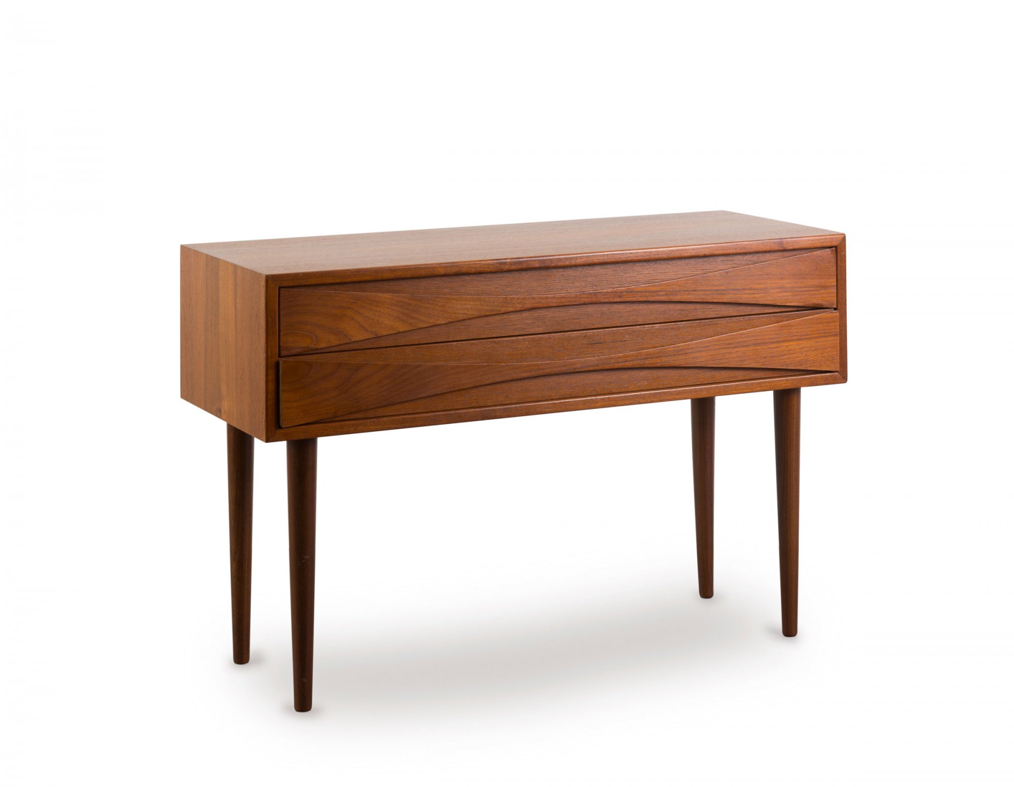 Arne Vodder. Small 'Triennale' dresser, 1959. H. 54 x 80 x 31.5 cm. Made by Sibast Møbler, Kopenhagen for NC Möbler, Odense. Chipboard, teakwood, teakwood veneer.