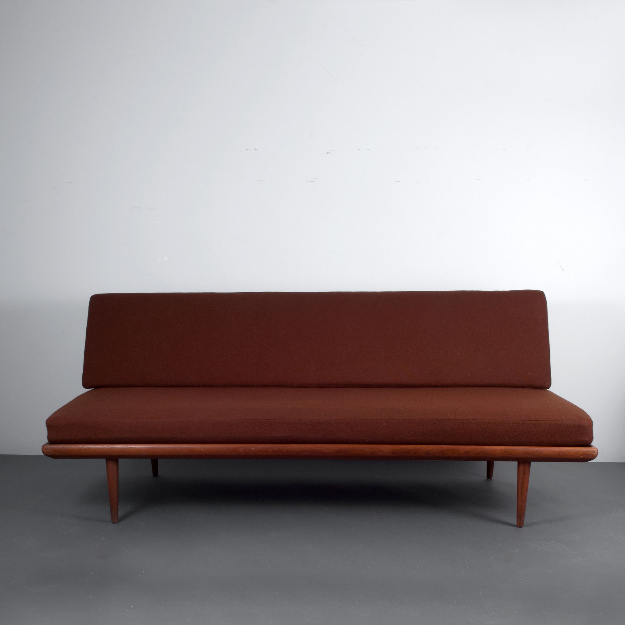 Peter Hvidt; Orla Mølgaard-Nielsen. Sofa/daybed, 1955. H. 79.5 x 192 x 76 cm. Made by France & Daverkosen, Copenhagen. Teak, chrome-plated tubular steel, brown fabric.