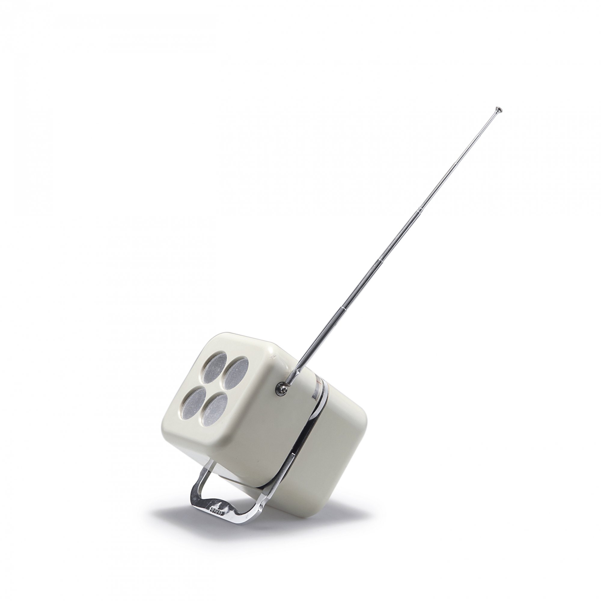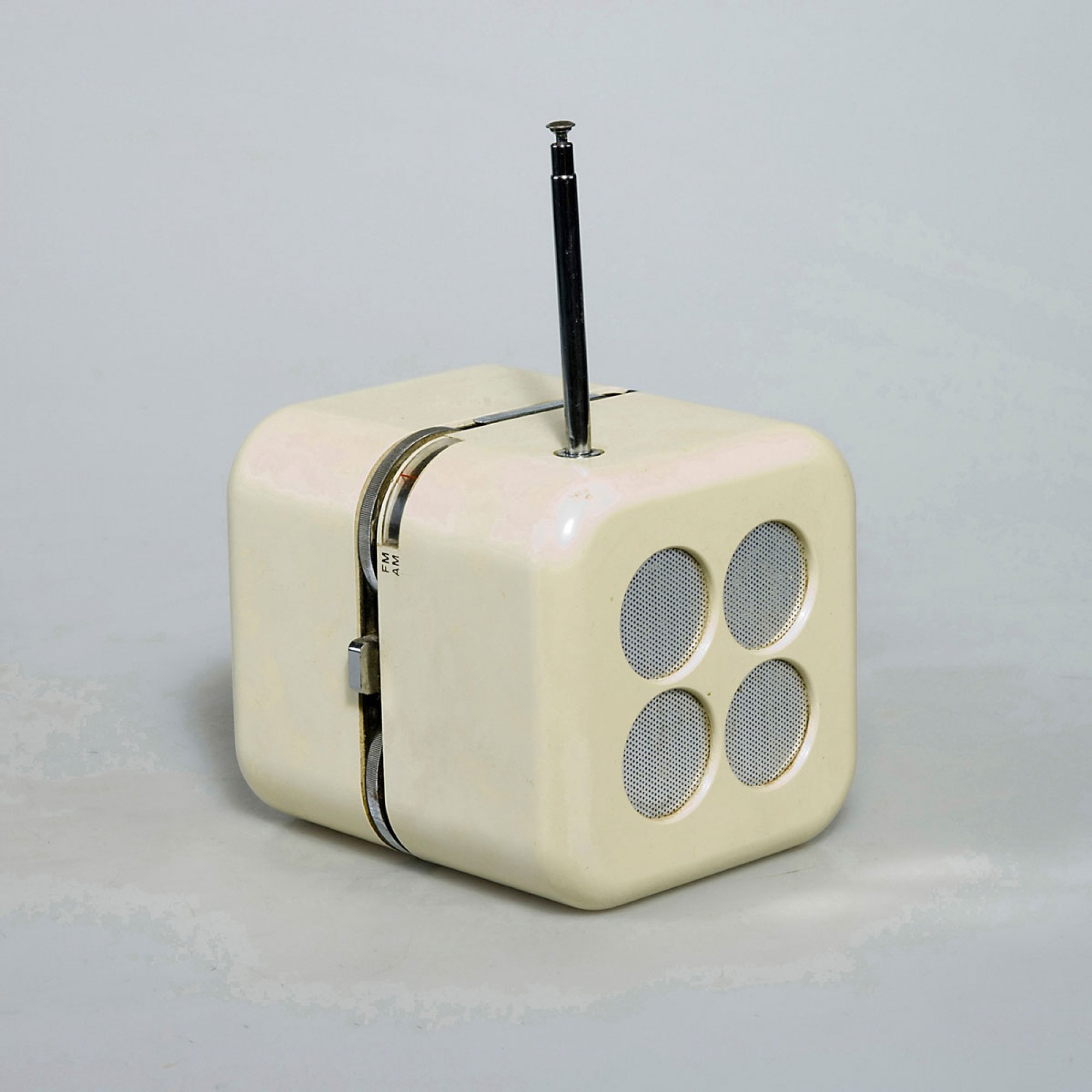 Mario Bellini. 'RK 501 ALPHA 2' radio, 1968. H. 21 x 14 x 12 cm. Made by Siemens, Munich. Crème-white ABS plastic, chrome-plated metal. Marked: Siemens, RK 501 ALPHA 2.