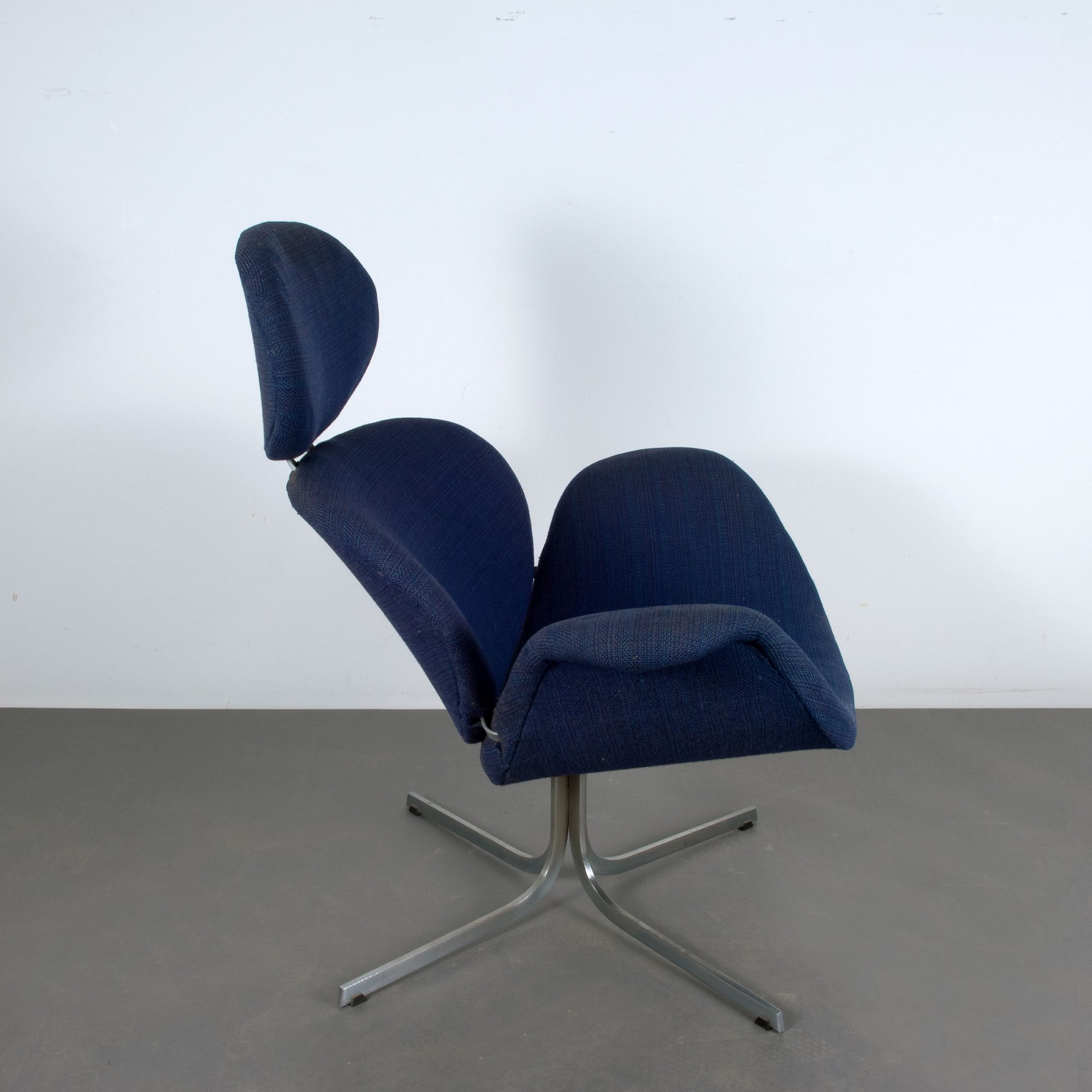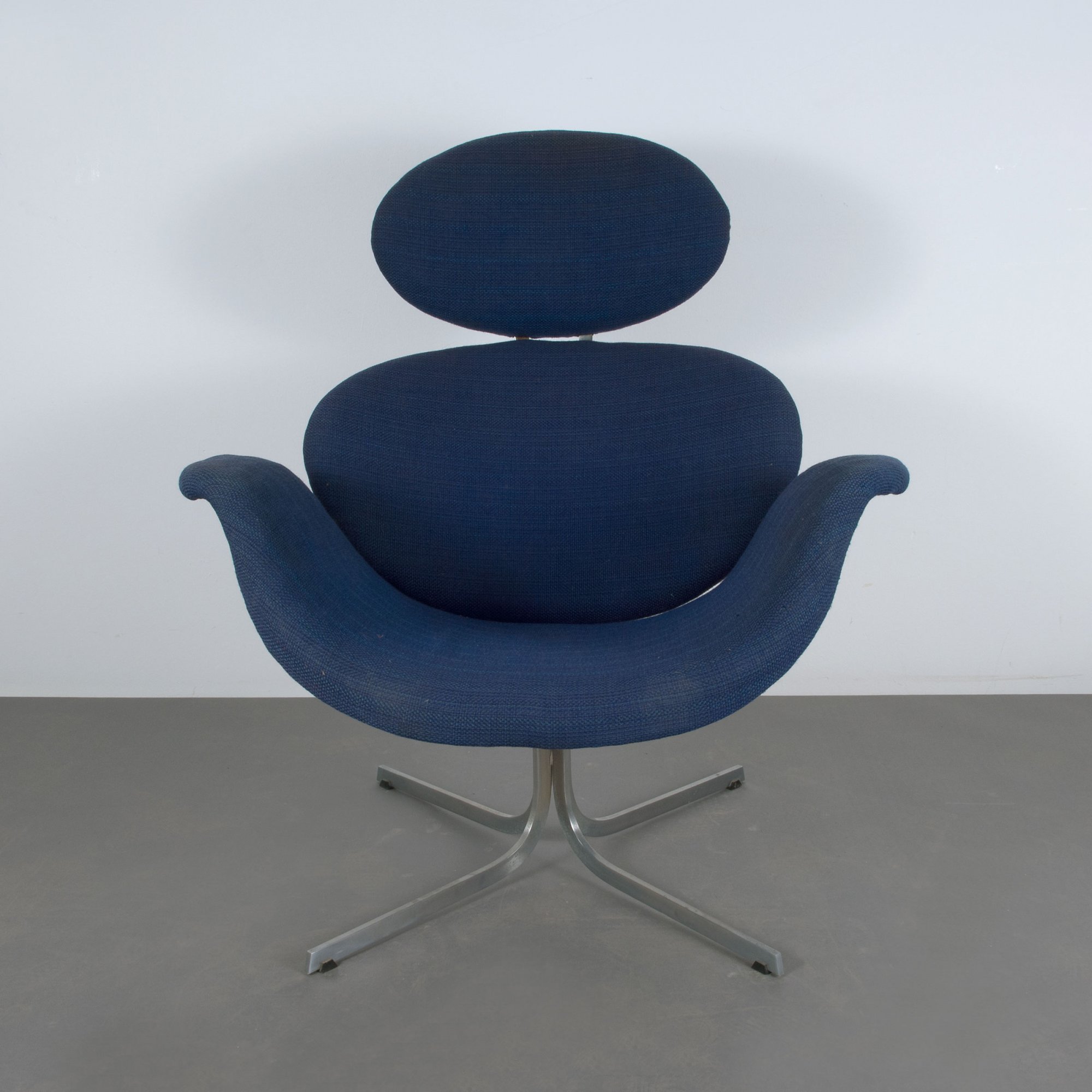 Pierre Paulin. 'F 545 - Big Tulip' armchair, 1959. H. 98 x 88 x 80 cm. Made by Artifort, Maastricht. Steel, chromed matt, grey/blue fabric. Marked: Metal badge.