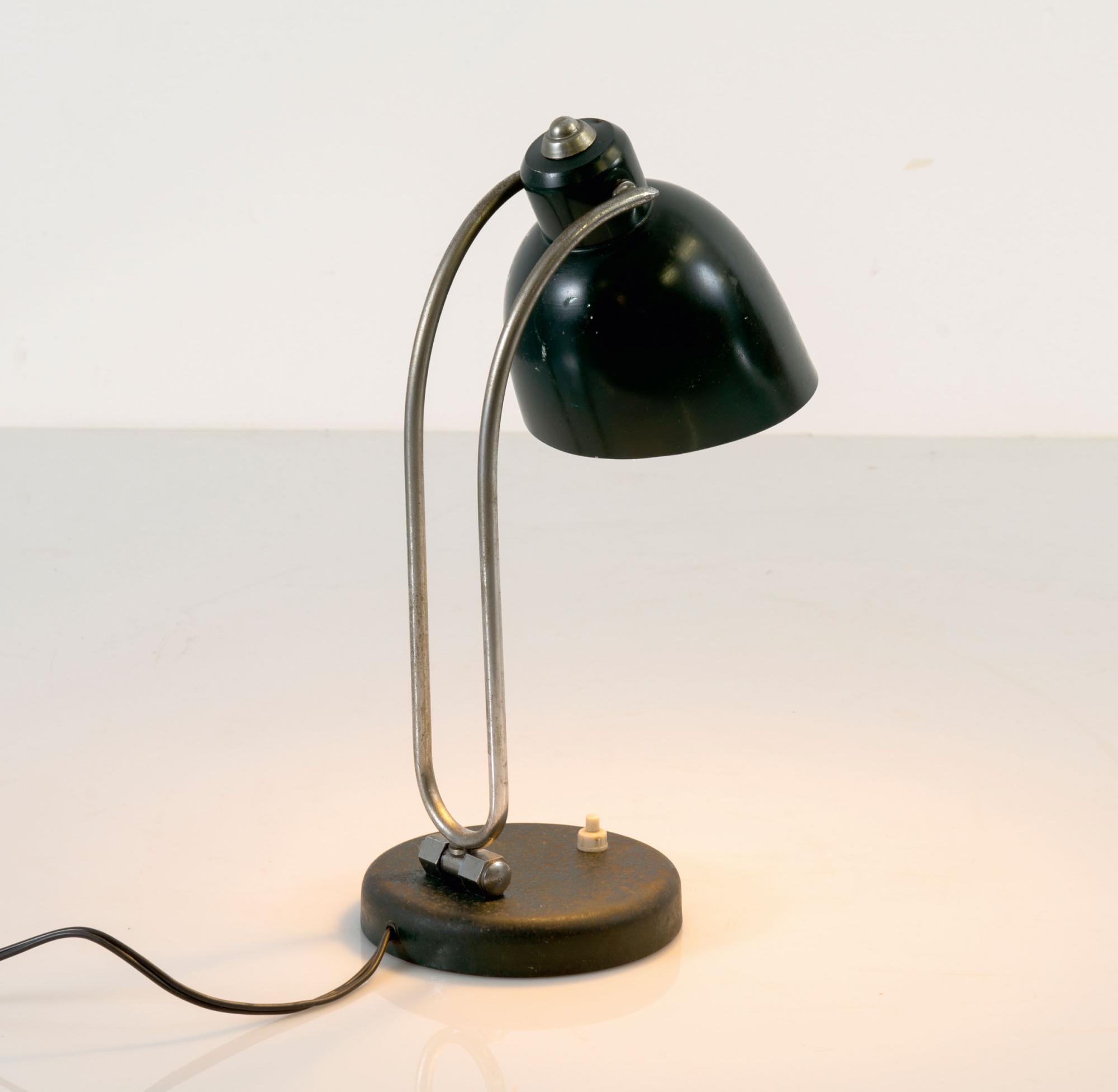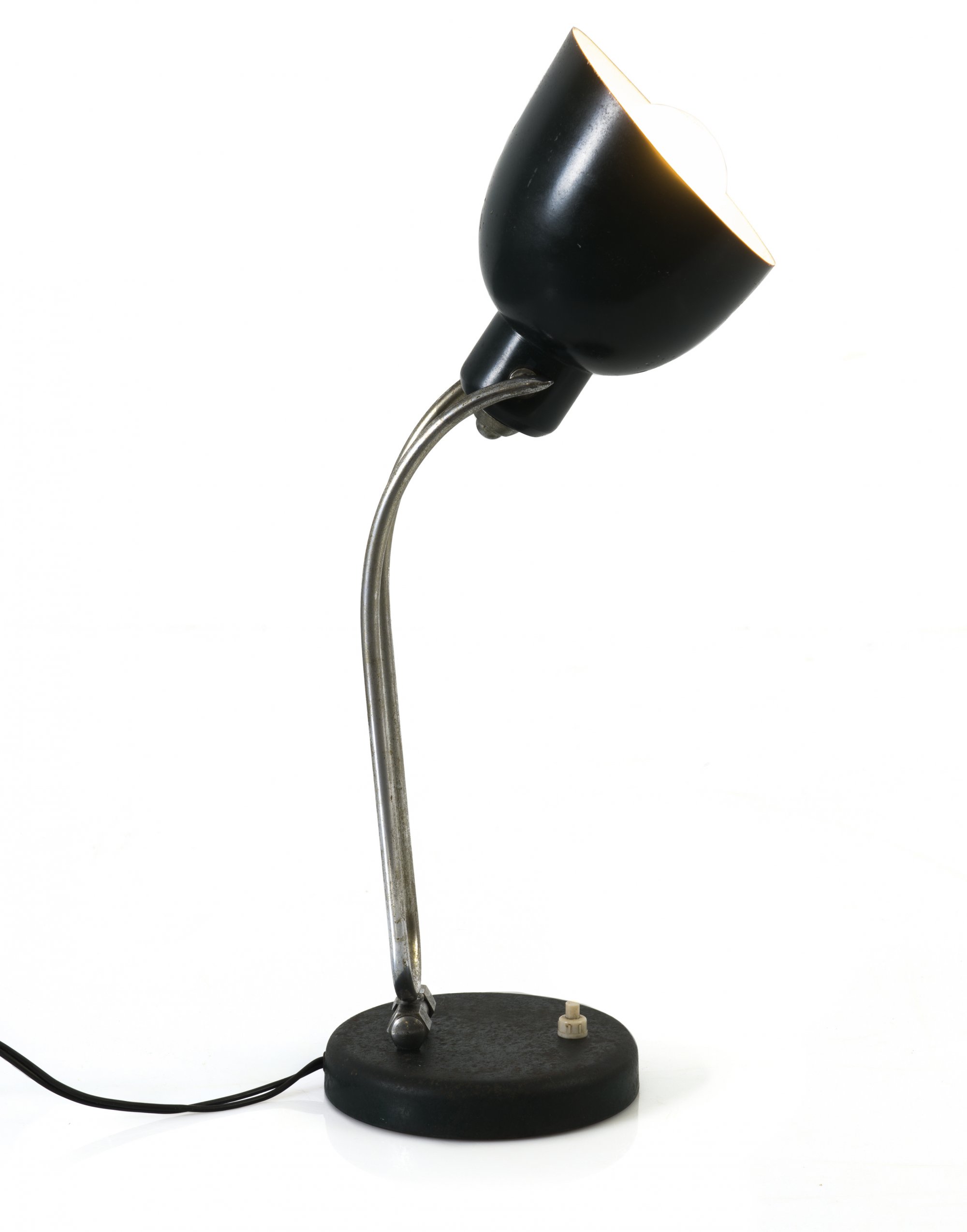 H. 42 cm, D. 13 cm. Chrome-plated tubular metal, painted sheet metal.