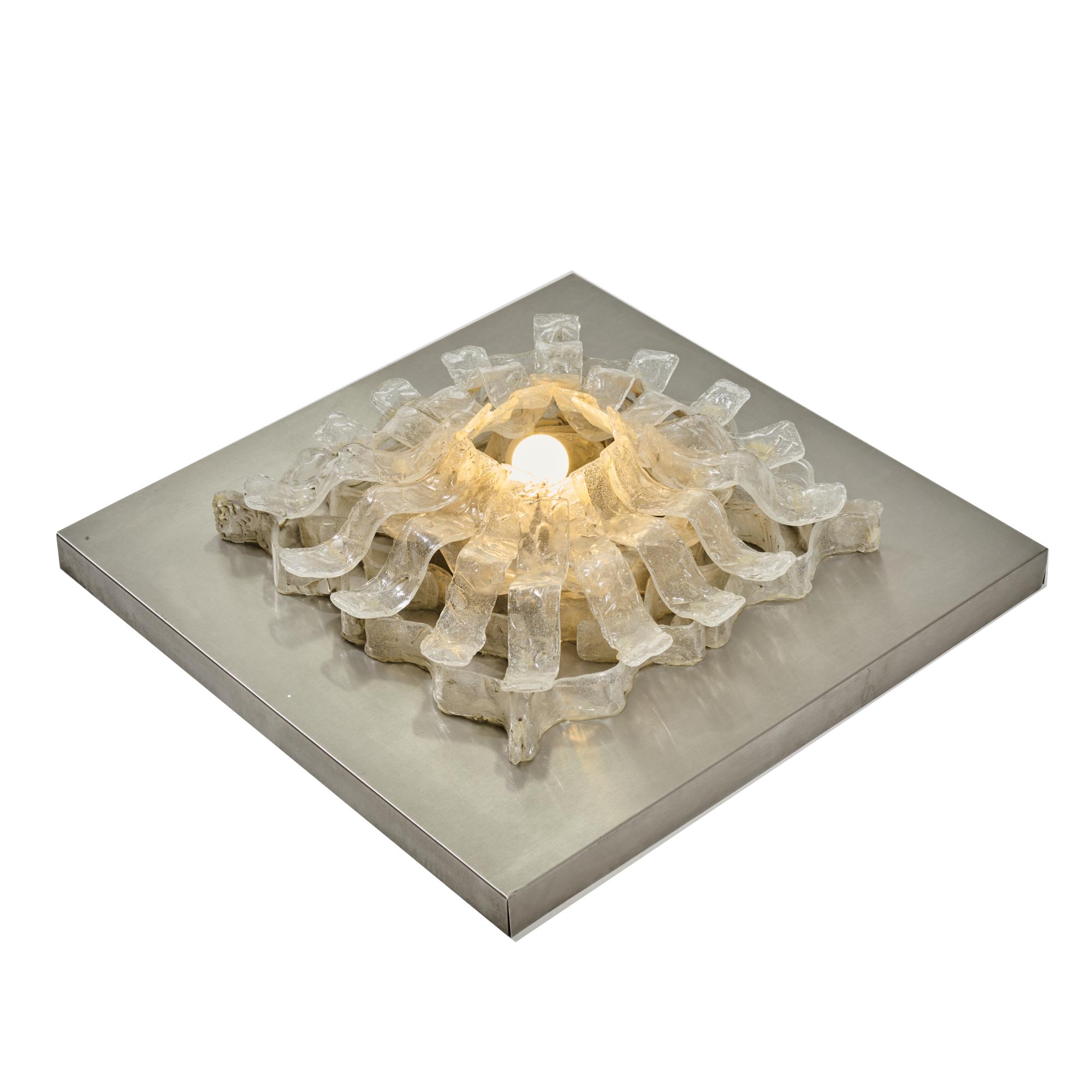 Stainless steel sheet, clear foam glass.