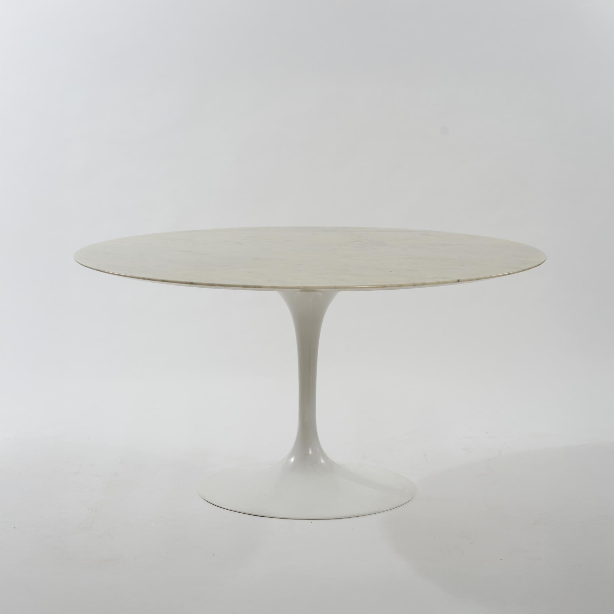 White marble with gray veining, white lacquered die-cast aluminum, white lacquered wood.