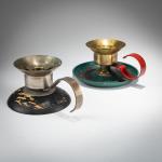 Nickel-plated brass, black-painted wood, and brass, partially painted red and dark green.