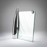 Aluminum, chrome-plated, clear glass, gray plastic.